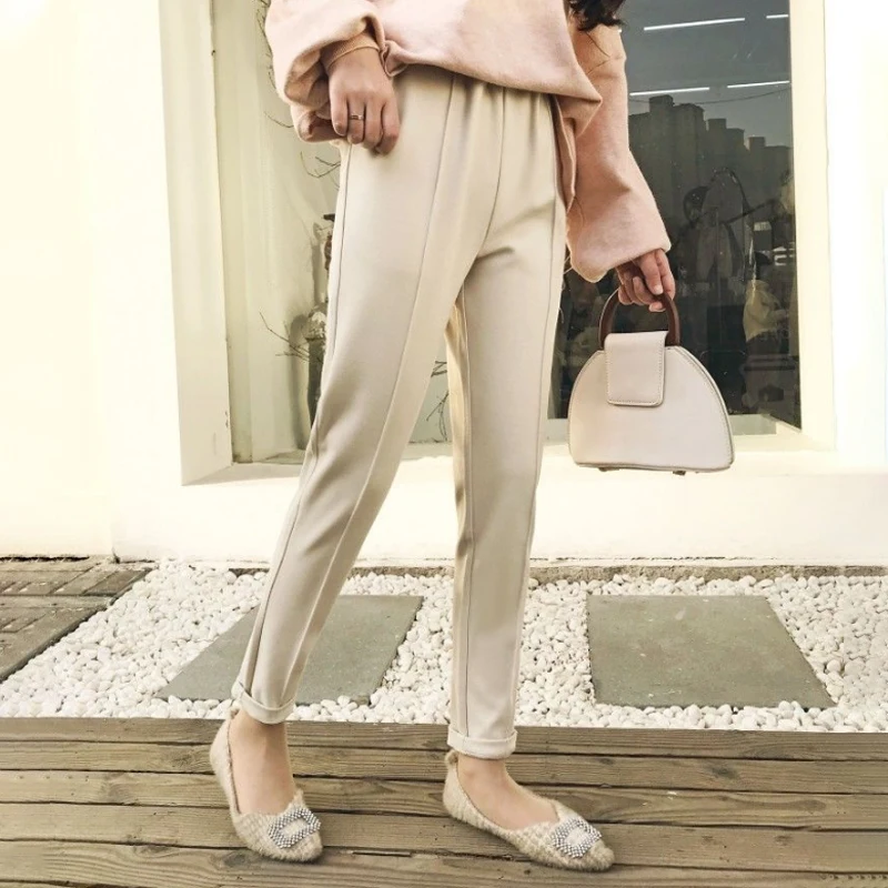 Зимние брюки-карандаш, женские утепленные шерстяные брюки, женские свободные брюки с эластичной высокой талией, модные мягкие однотонные Капри, женская нижняя одежда