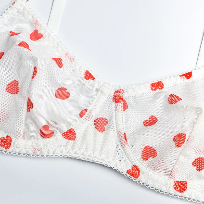 Нижнее белье, сексуальный комплект из бюстгальтера и трусиков с принтом в форме сердца, женские комплекты для ухода за кожей, Эротическое нижнее белье, бесшовное интимное белье