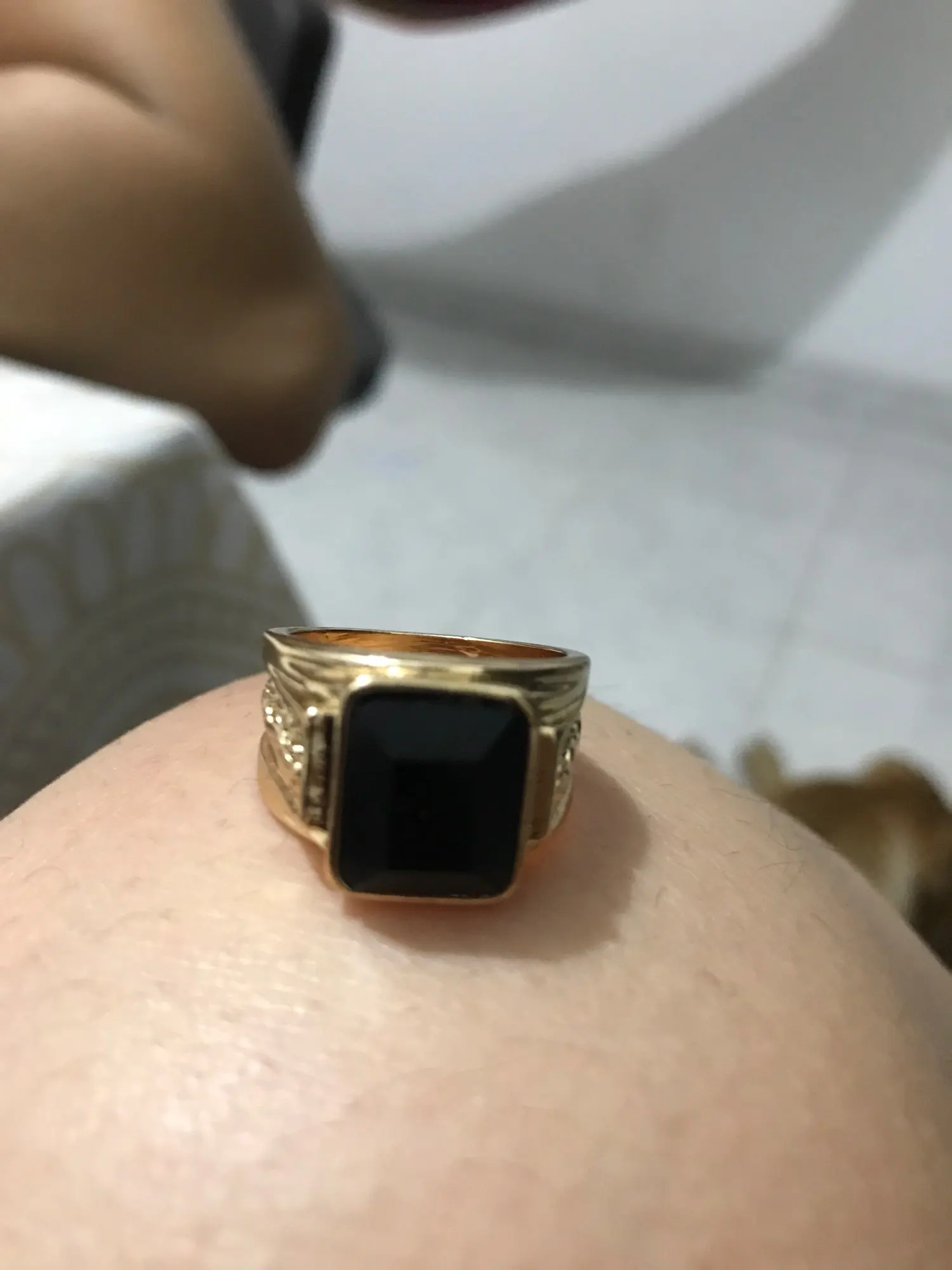 Мужское кольцо из меди с черным кристаллом, широкое золотистое коль...