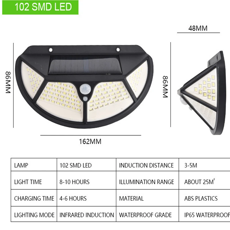 Уличный настенный светильник на солнечной батарее, 102 светодиодов,...
