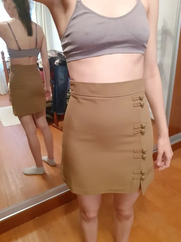 Размер узнавала у продавца, так как размерной сетки нет. На 63/90 рост 163 размер s подошёл, но сидит не так хорошо, как на фото продавца. Носить придется только летом с бесшовным бельем. Цвет светлее, чем на фото. Сшита аккуратно. Сидеть в юбке нормально, в живот не врезается.