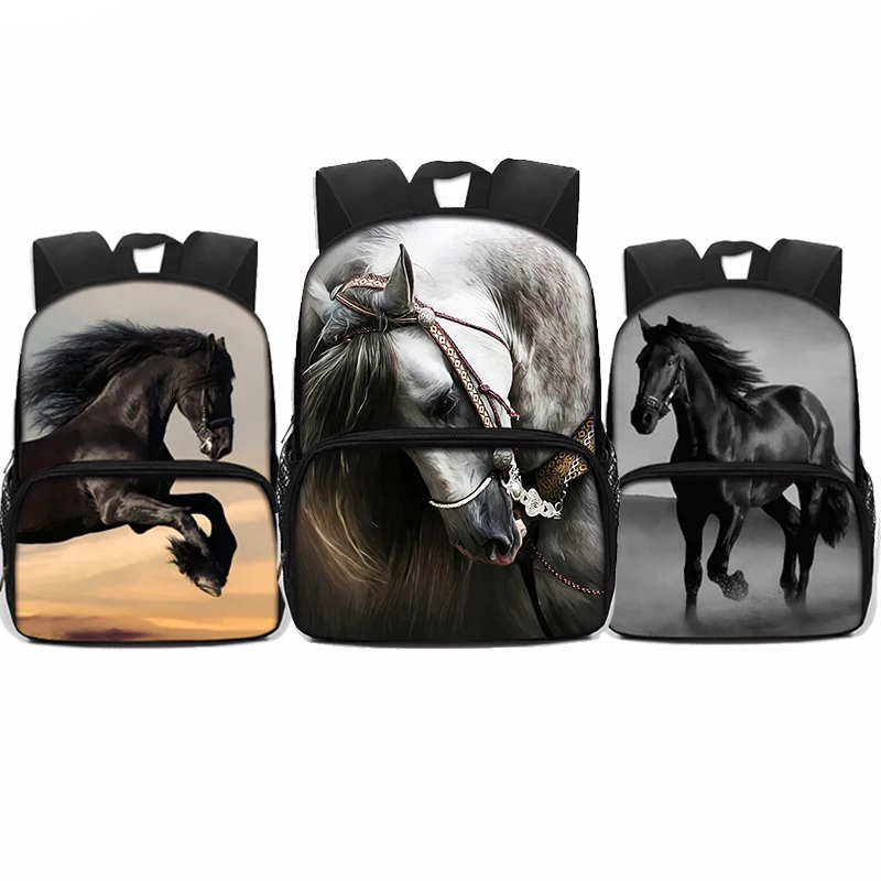 13 дюймов животный скачкообразный рюкзак с изображением темной лошади, школьные сумки для подростков, рюкзак для детского сада, книжные сумки, подарок
