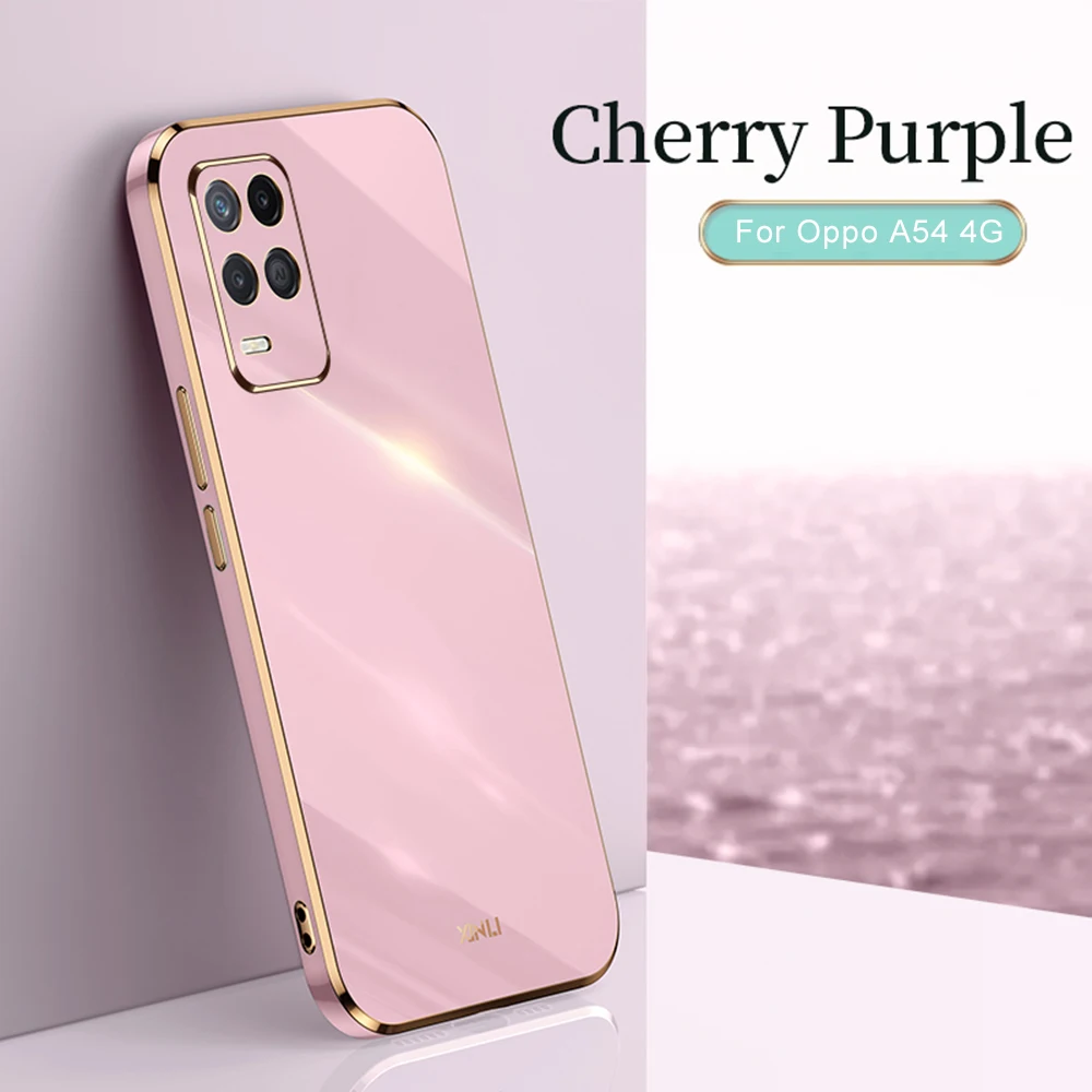Чехол для Oppo A54 с гальваническим покрытием и прямым краем, мягки...