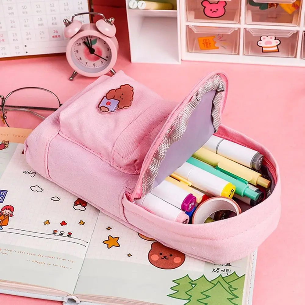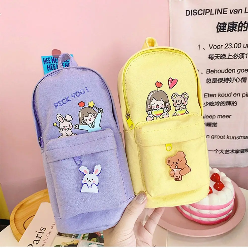 Холщовый пенал на молнии, чехол для ручек и карандашей, вместительные школьные принадлежности