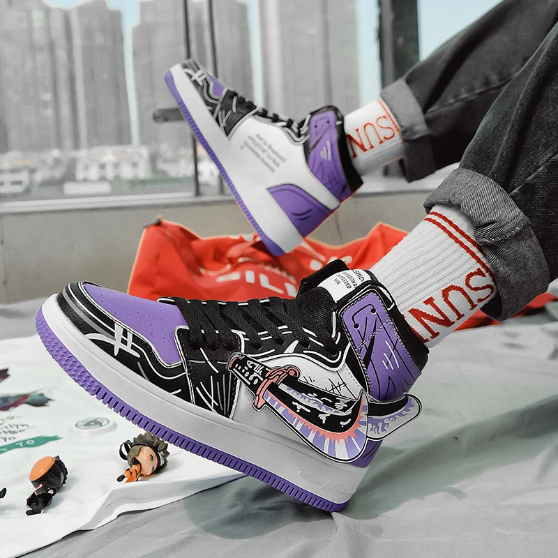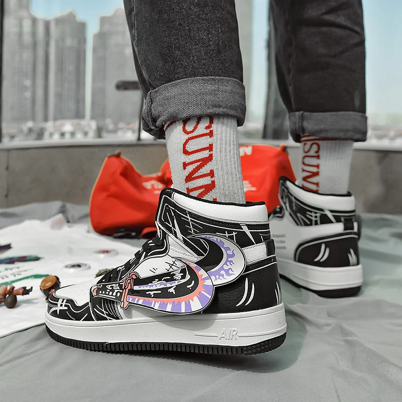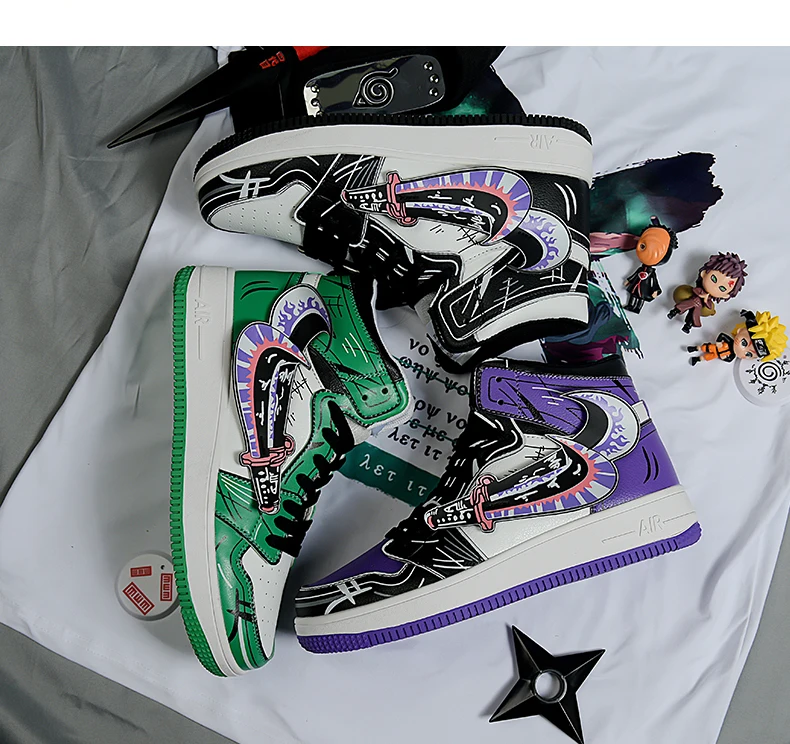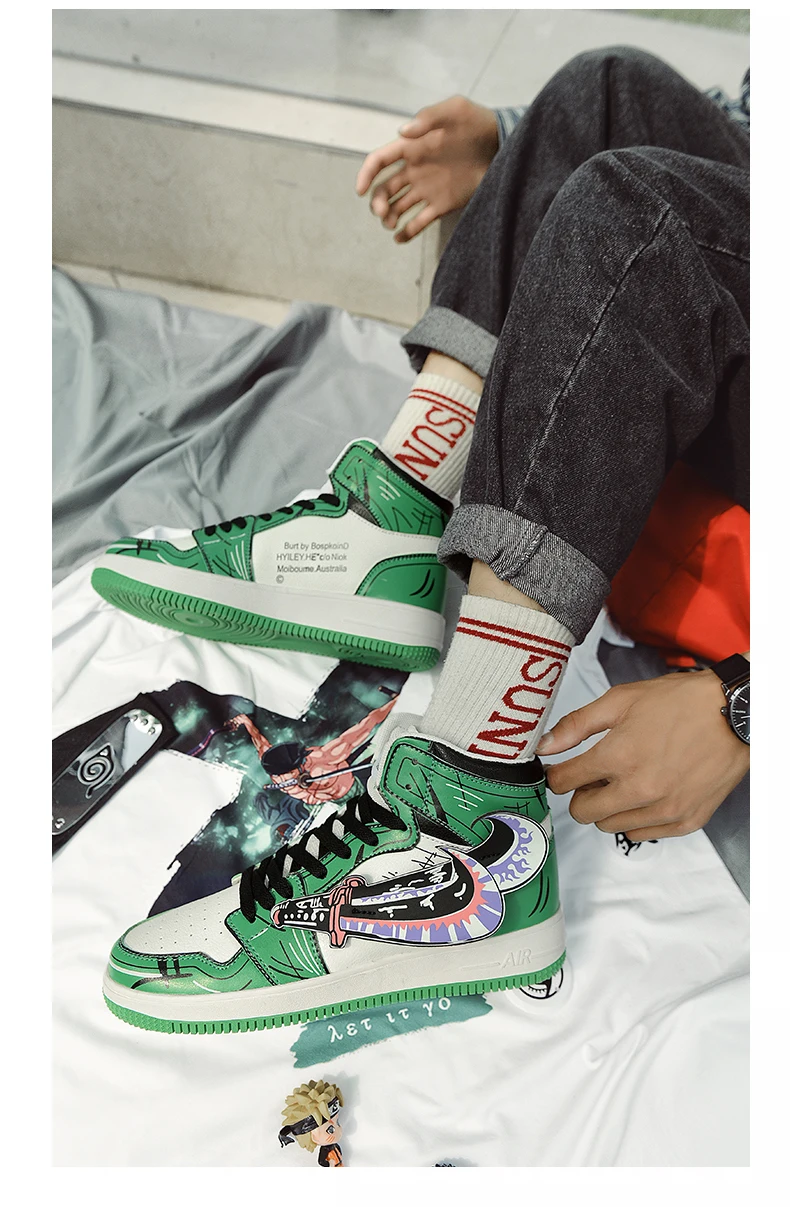 Кроссовки мужские с вулканизированной подошвой, Кожаные сникерсы с высоким берцем в стиле аниме, Повседневная Осенняя обувь на плоской подошве для скейтборда