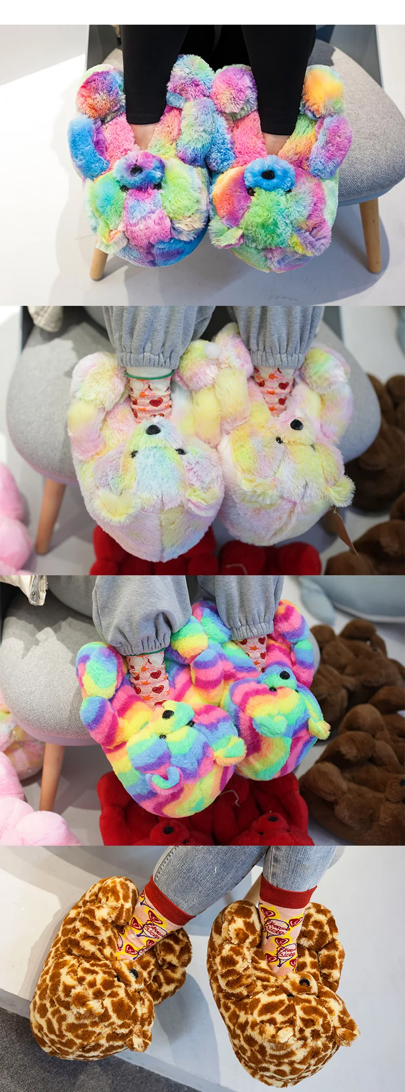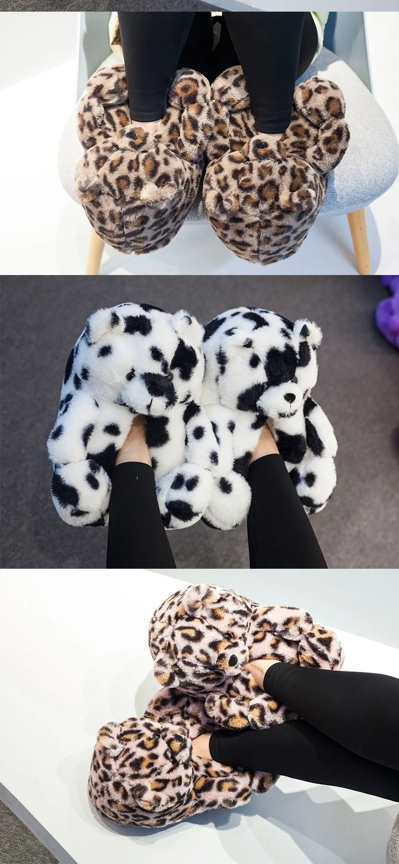 Новые женские ботинки Lndoor, пушистая теплая обувь, женская смешная мультяшная плюшевая обувь Мишка, тапочки, Уютные Тапки из искусственного меха
