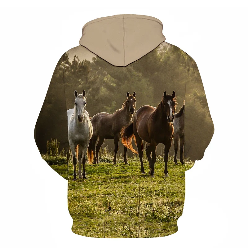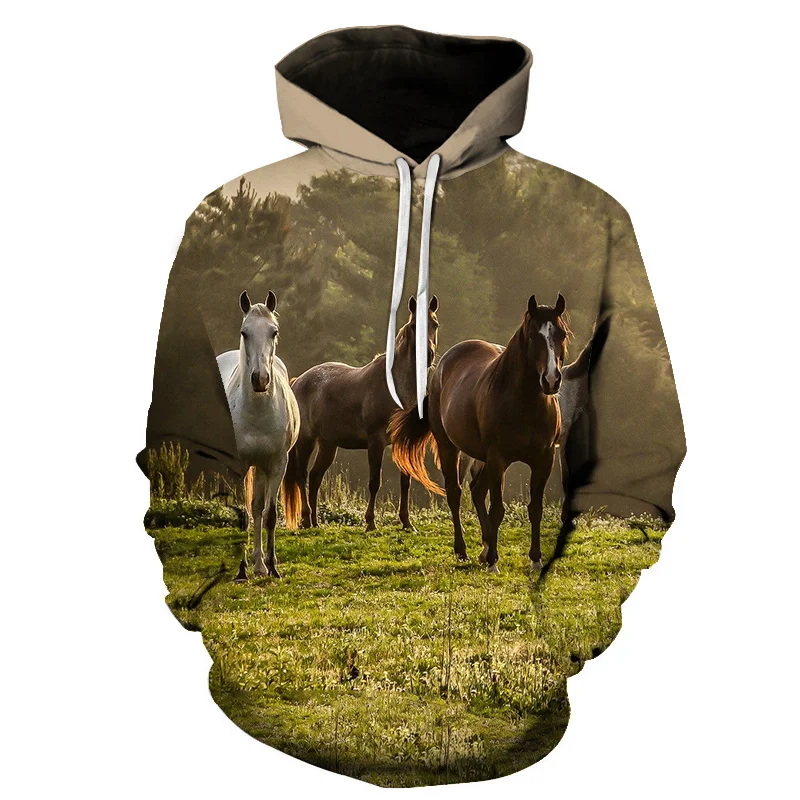 Худи с 3D-принтом в виде животных, лошади, Модный свитшот в стиле х...