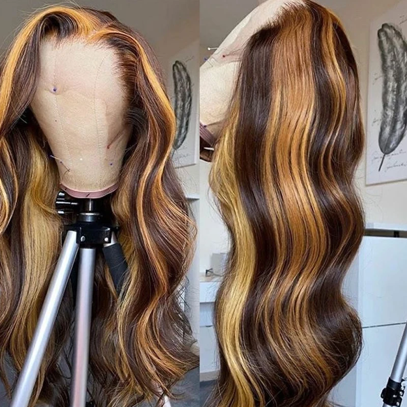 P4/27 выделяющий парик из человеческих волос, парики из натуральных волос на шнурке для чернокожих женщин, медовый блонд, Омбре, парик на шнурке