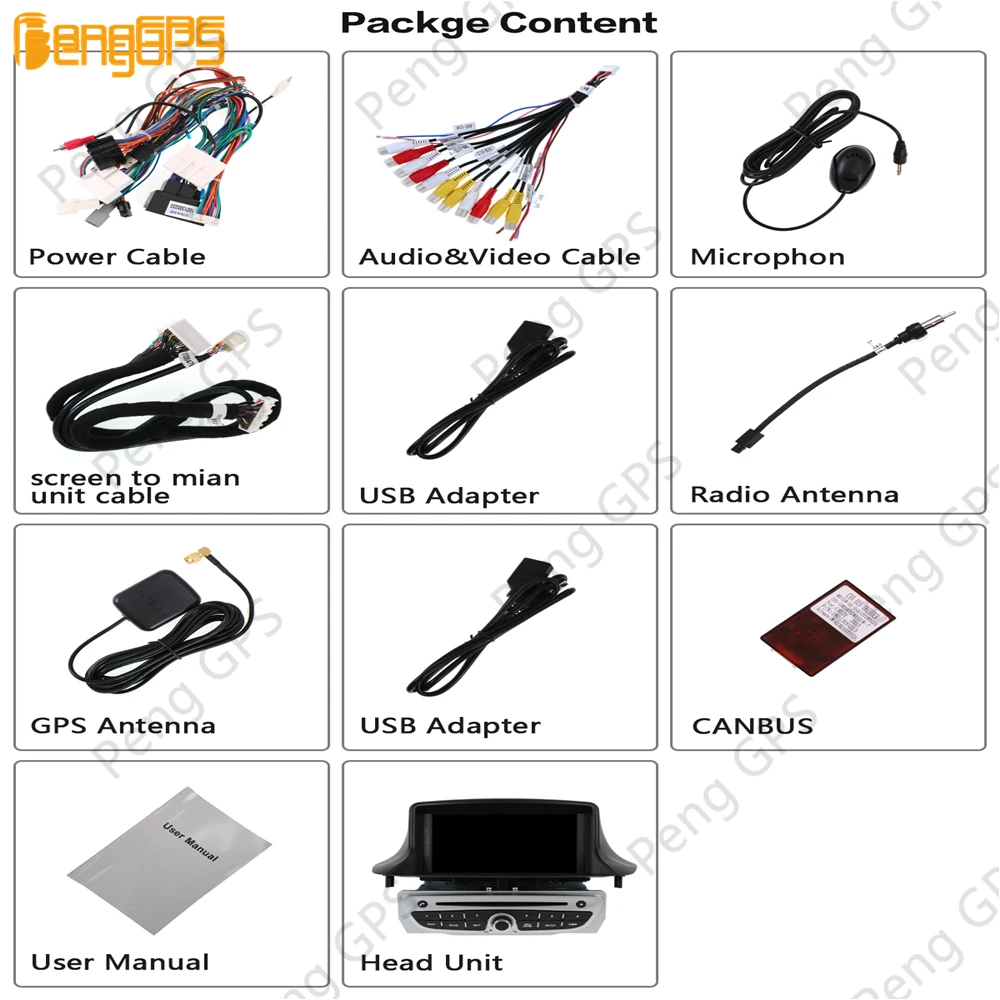Наш продукт поставляется с GPS антенной, gps-картой для вашей страны, usb-адаптером, аудио и видео входным кабелем, кабелем питания... и т. д., все наборы для установки будут в посылка.