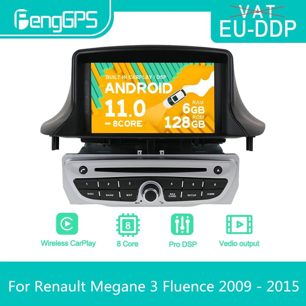 Автомагнитола для Renault Megane 3 Fluence 2009-2015, Android, стерео, DVD, мультимедийный плеер, 2 Din, Авторадио, GPS-навигатор, PX6
