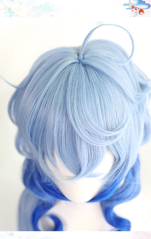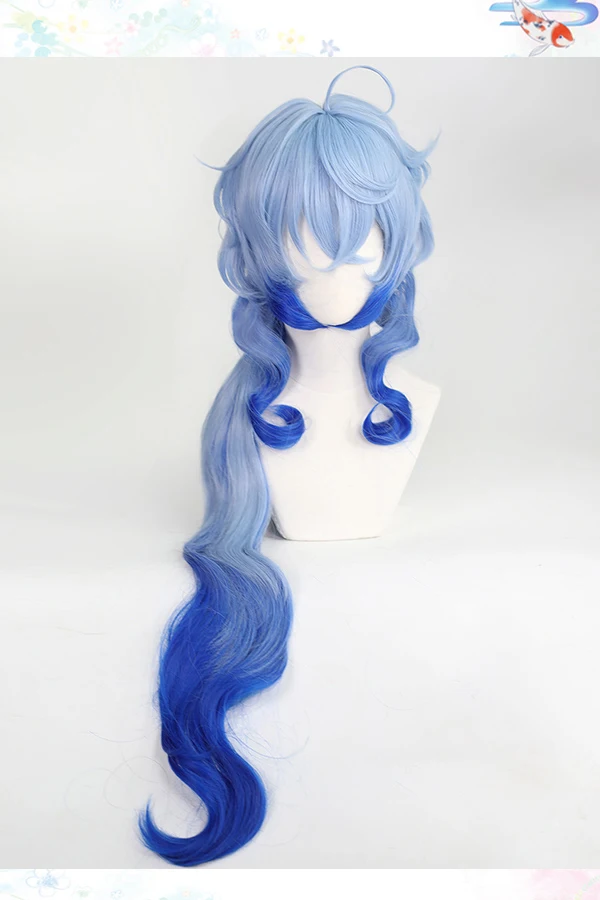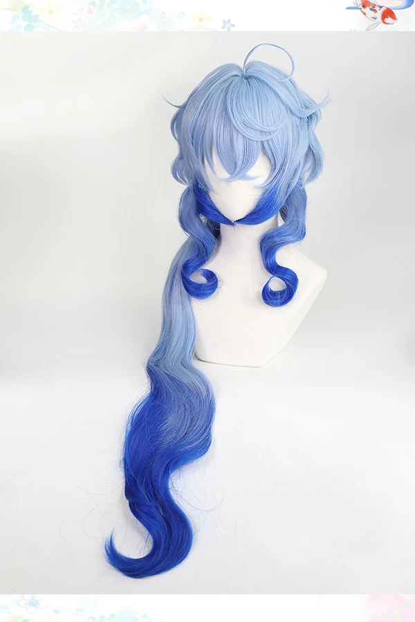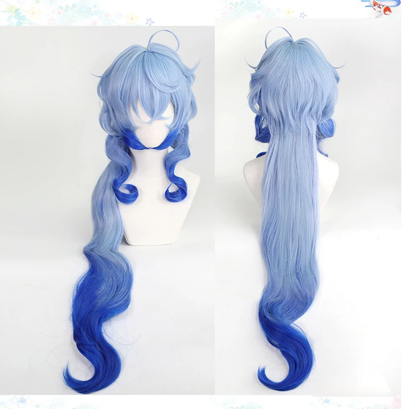 Парик для косплея ганью из аниме Game Genshin Impact, термостойкие синтетические волосы с длинным синим градиентом, с шапочкой для Хэллоуина