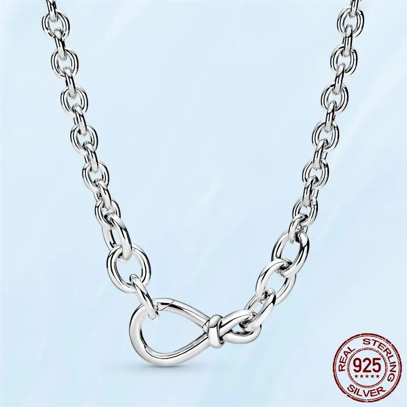 Цепочка с узлом бесконечности женская, ожерелье серебристого цвета,...