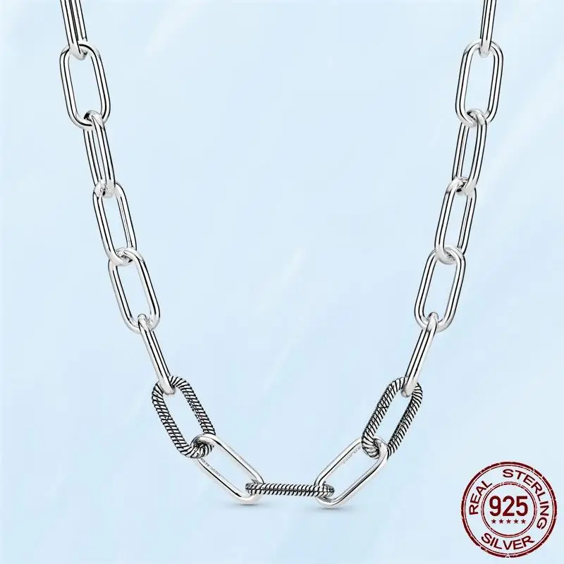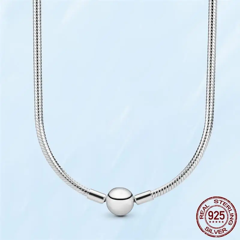 Лидер продаж, оригинальное ожерелье из серебра 925 пробы в виде змеиной цепочки, подходит для оригинальной Pamura, женская бижутерия для вечеринки и свадьбы, подарок