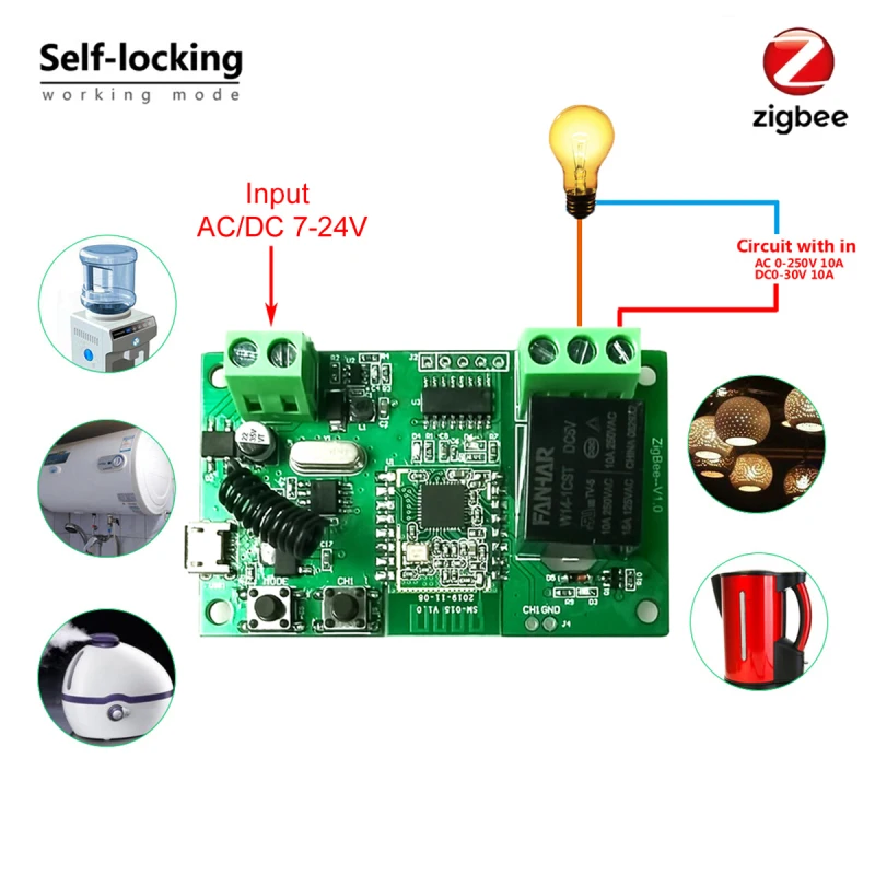 Поддерживает удаленное Включение или выключение подключенных приборов, например светильник, электрический чайник, электрическая рисоварка, электрический занавес, контроль доступа и т. Д.