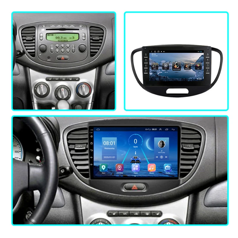 Автомагнитола на Android 10,0, мультимедийный видеоплеер для Hyundai I10 2007-2011, 2012, 2013, GPS Serero Carplay, 6G, 128G, IPS, No 2 din, DVD
