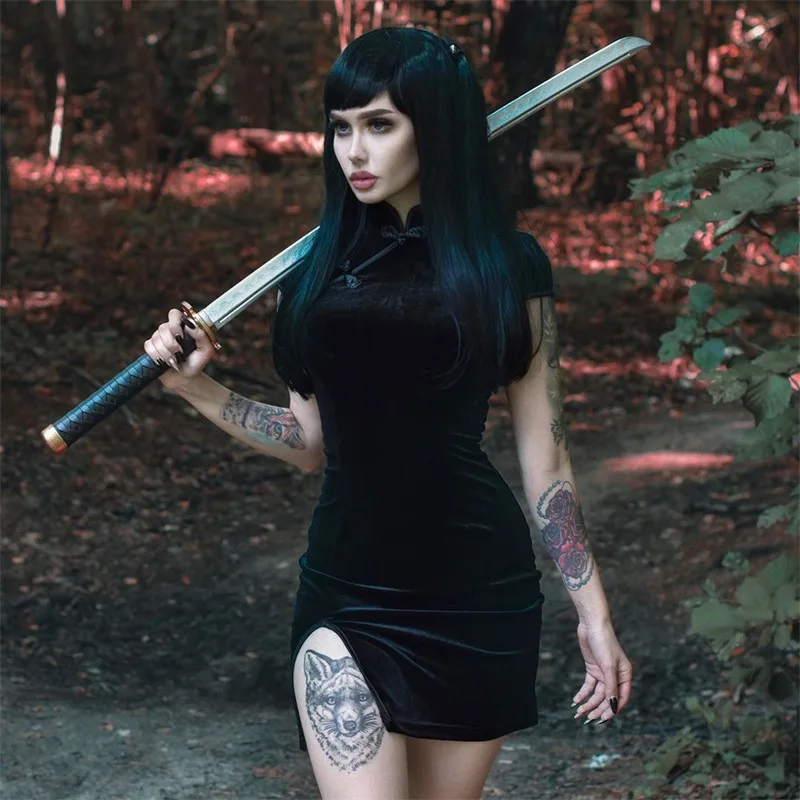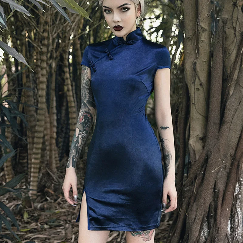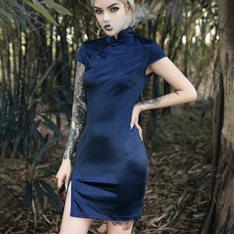 Женское бархатное платье-Ципао с воротником-стойкой, облегающее мини-платье в стиле Харадзюку