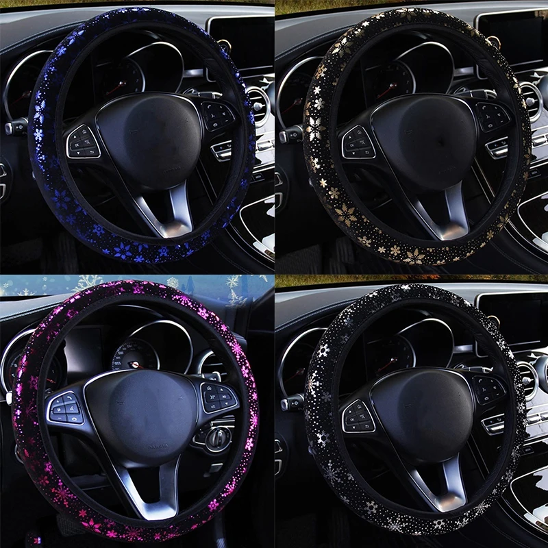 Чехлы на руль автомобиля, диаметр 38 см, 4 цвета, блестящие снежинк...