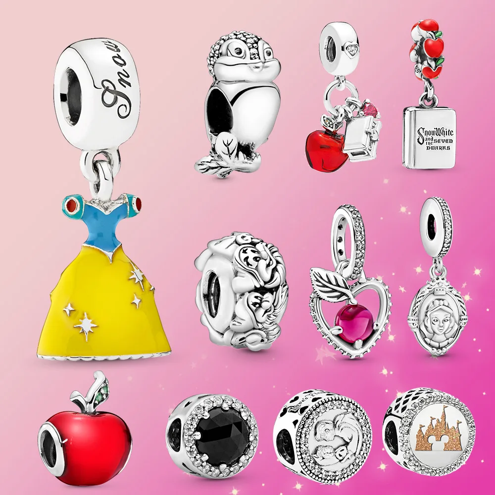 Подвеска из серебра 925 пробы, подвеска в виде Белоснежки, подвеска в виде 7 гномов с красным яблоком, подходит для оригинального браслета Пандоры, женский подарок из бусин