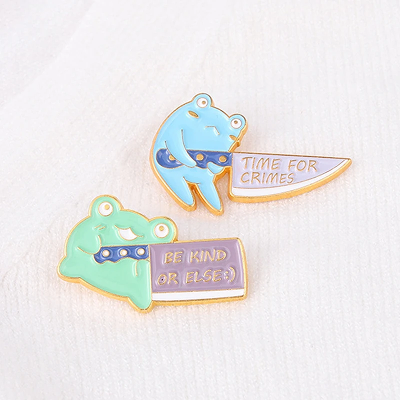 Мультяшные креативные эмалевые булавки с веселыми животными лягушкой ножом смайликом из сплава