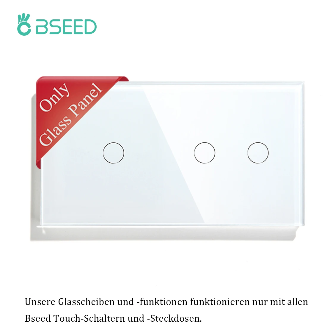 Bseed EU RU Standard Glass Pearl Crystal Glass 3 Gang Single Glass Panel EU 157mm White Black Gloden Glass Panel Only 3 Colors
