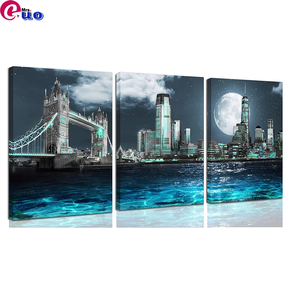 Алмазная живопись сделай сам, 3 предмета, триптих с бруклинским мос...