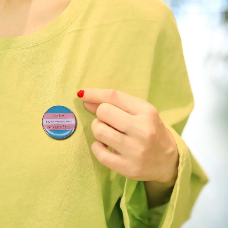 Здравствуйте, мои местоимения это она/ее эмалированные булавки круглая брошь с буквами Металлическая Булавка для местоимения значки на рюкзак аксессуары ювелирные изделия 2021