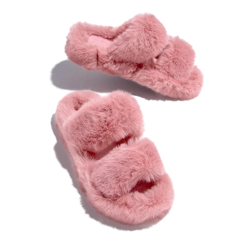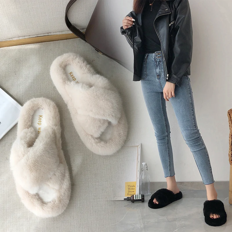Домашние женские меховые тапочки, пушистые мягкие пушистые шлепанцы...