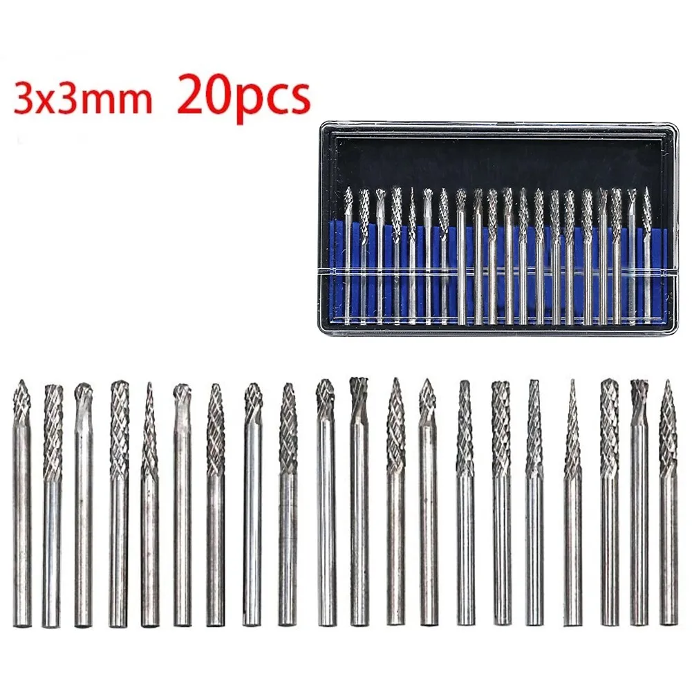 Набор фрез для дрели, комплект из 20 шлифовальных насадок с хвостовиком 3 мм, для дерева