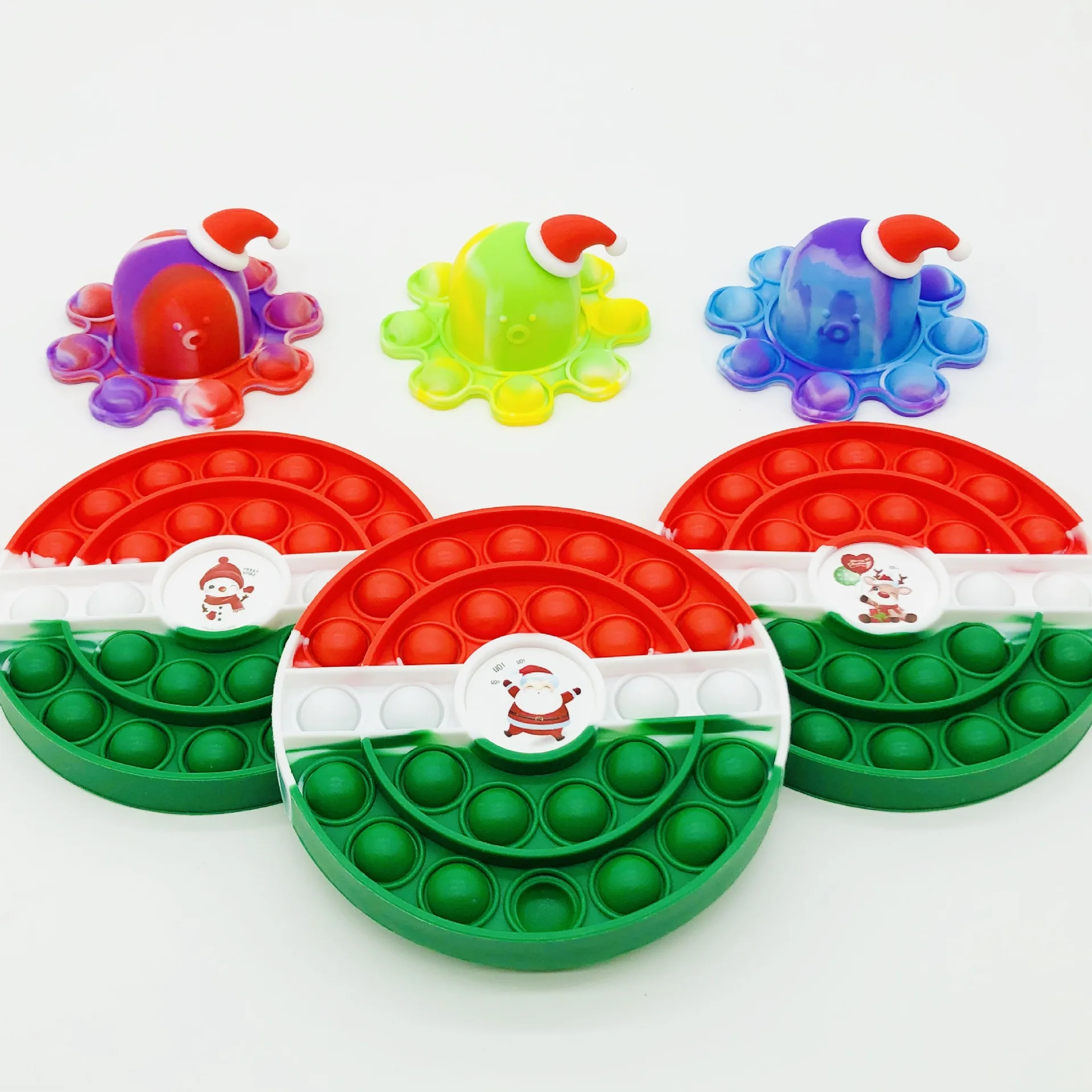 Игрушка-антистресс для детей и взрослых, круглая форма, Дед Мороз, снеговик, радуга, Рождество, осьминог, пуш-поп, декомпрессионная развивающая игрушка