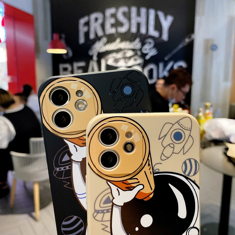 Милый креативный квадратный чехол для телефона с космонавтом для iPhone 12 11 Pro Max12 Mini XS Max X XR 8 7 6Plus SE, мягкий чехол из ТПУ с боковым узором