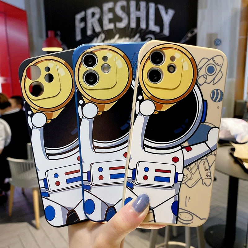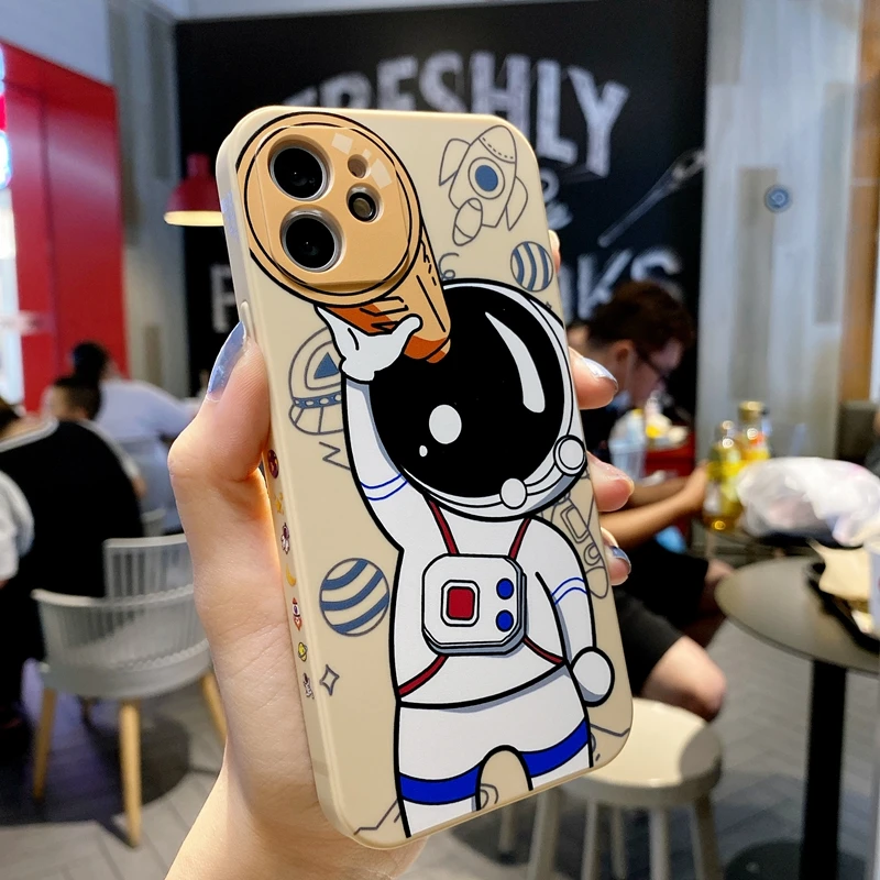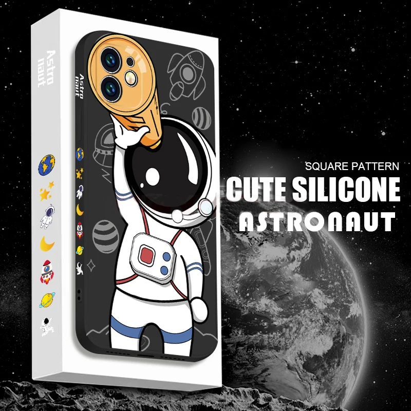 Милый креативный квадратный чехол для телефона с астронавтом для iPhone 13 Pro 12 11 Pro Max XS Max X XR 8 7 6Plus SE, мягкий чехол из ТПУ с боковым рисунком