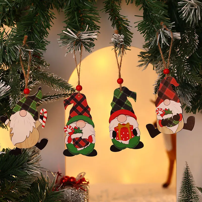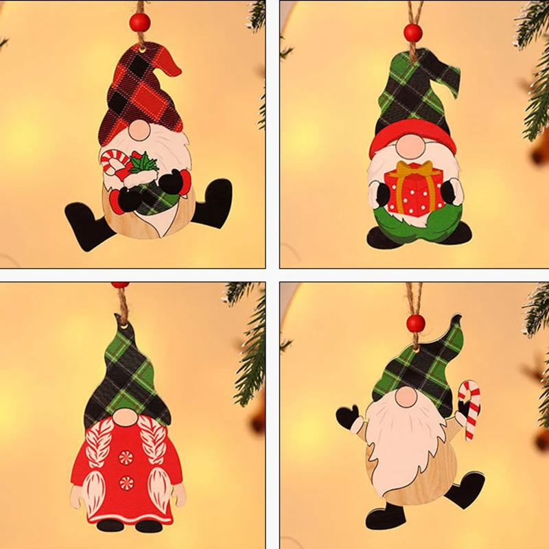 1 шт. деревянная окрашенная подвеска в виде рождественской елки, милый Санта-Клаус, Рождественская шляпа, подвесное украшение для новогодней вечеринки
