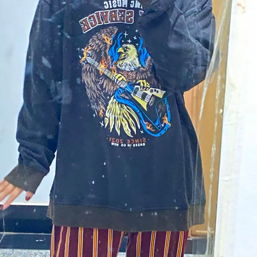 Нормальный свитшот. На размер 42 заказывала XXL, и всё хорошо подошло (оверсайз). Материал тонкий, комфортный, нитки нигде не торчат, принт чёткий. Продавец быстро отправил товар, получила его через 3 недели на почте. Рекомендую к покупке.