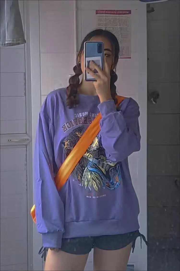 Худи женское осеннее в стиле Харадзюку, с длинным рукавом