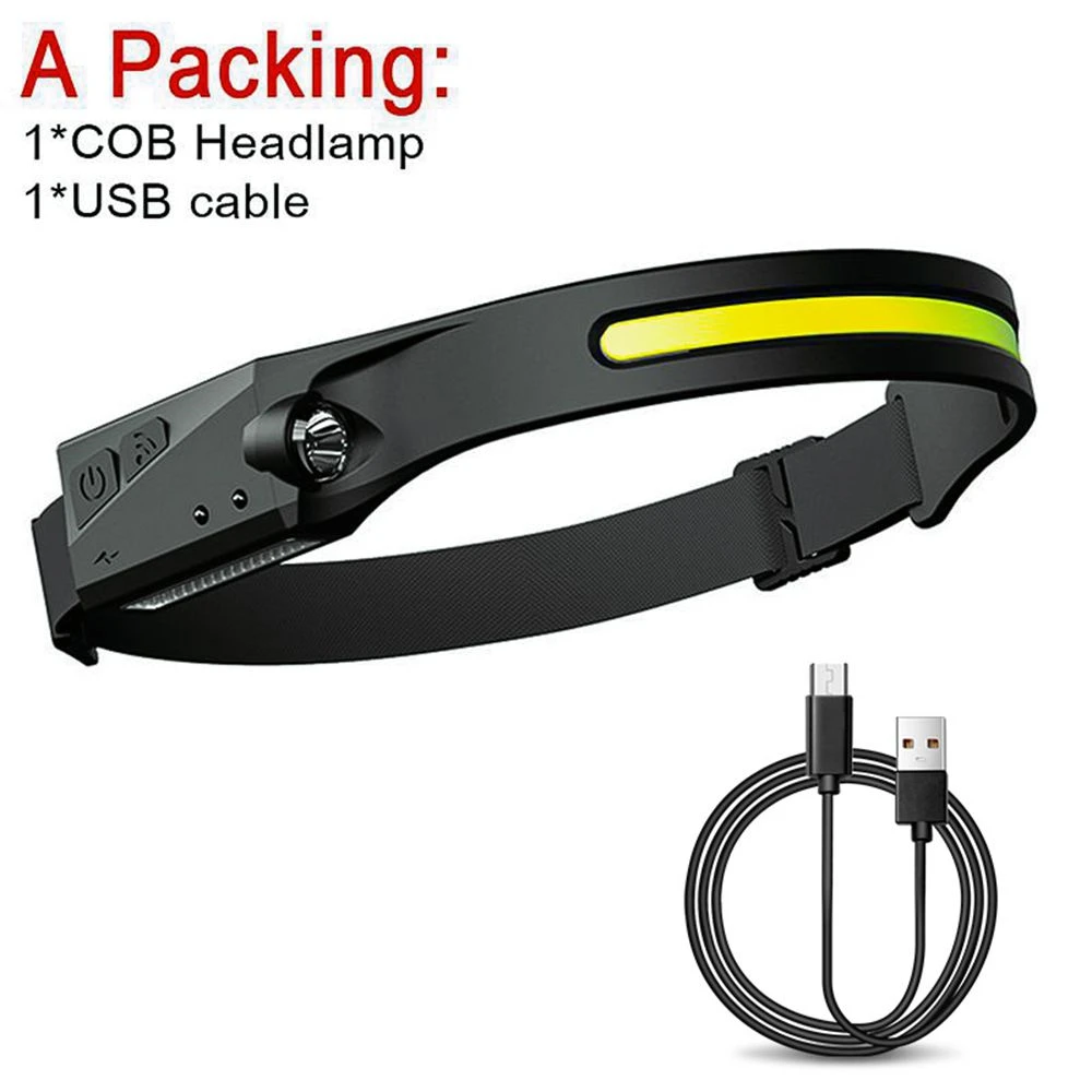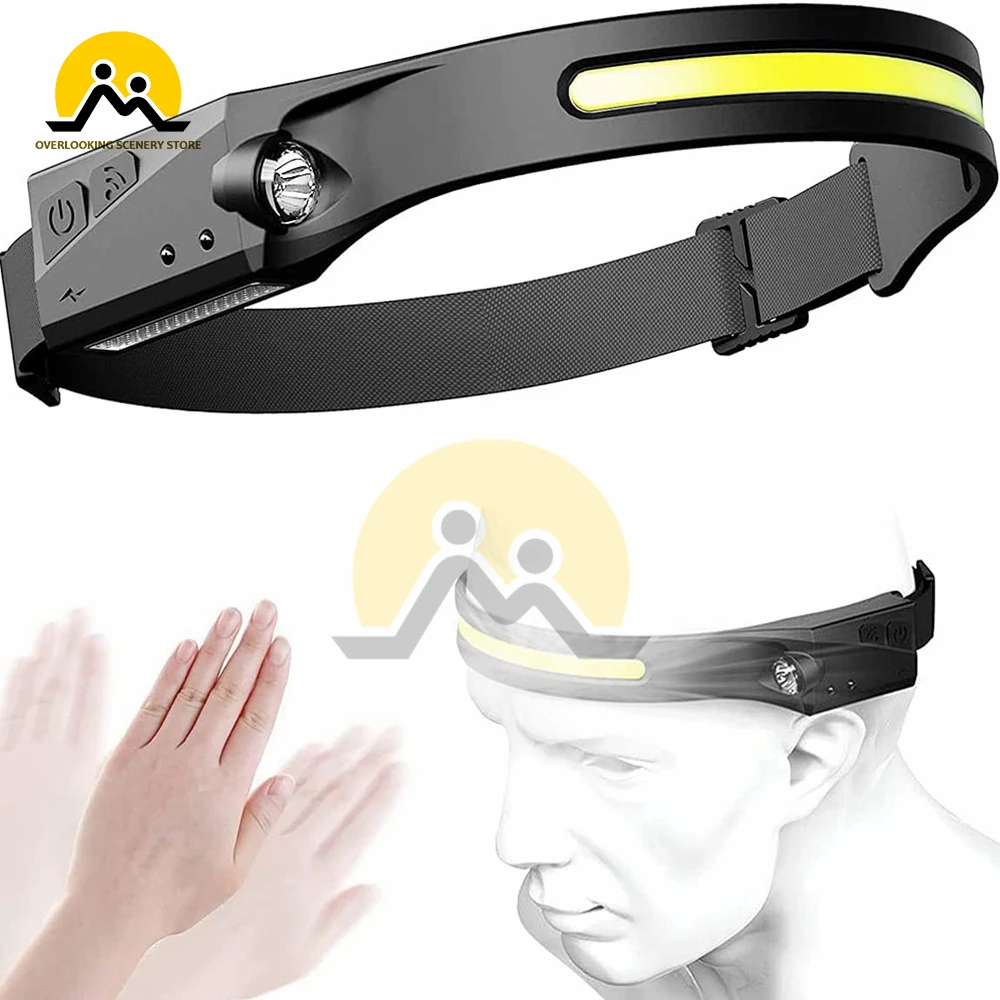 Светодиодная фара с широким лучом, перезаряжаемая USB Водонепроницаемая умная фара-фонарик, 5 режимов освещения, высокая яркость