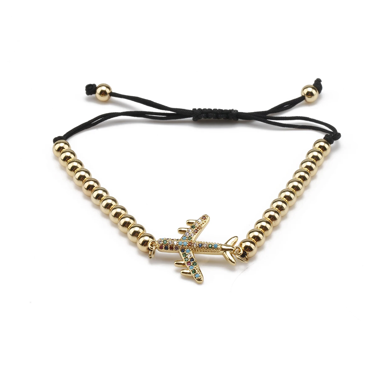 Имя:Многоцветный кубический цирконий, позолоченный латунный браслет с самолетом, женский браслет с самолетом CZ, микро выложенный слайд-шнур, ювелирный подарок