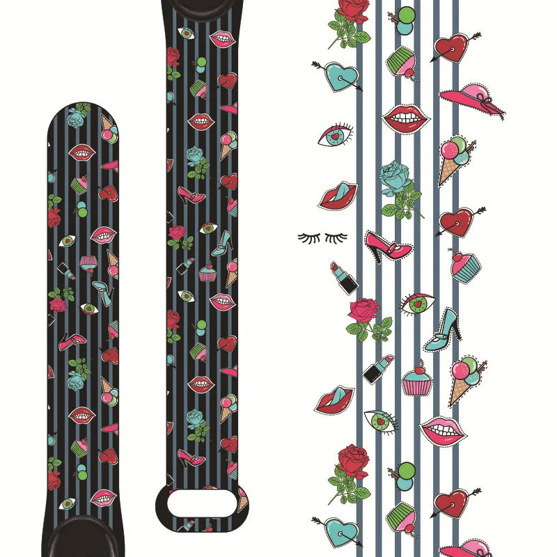 Силиконовый браслет ремешок для Xiaomi Mi Band 4 3 ремешок для часов с мультяшным принтом сменный Браслет xiaomi my band Пояс 5 6