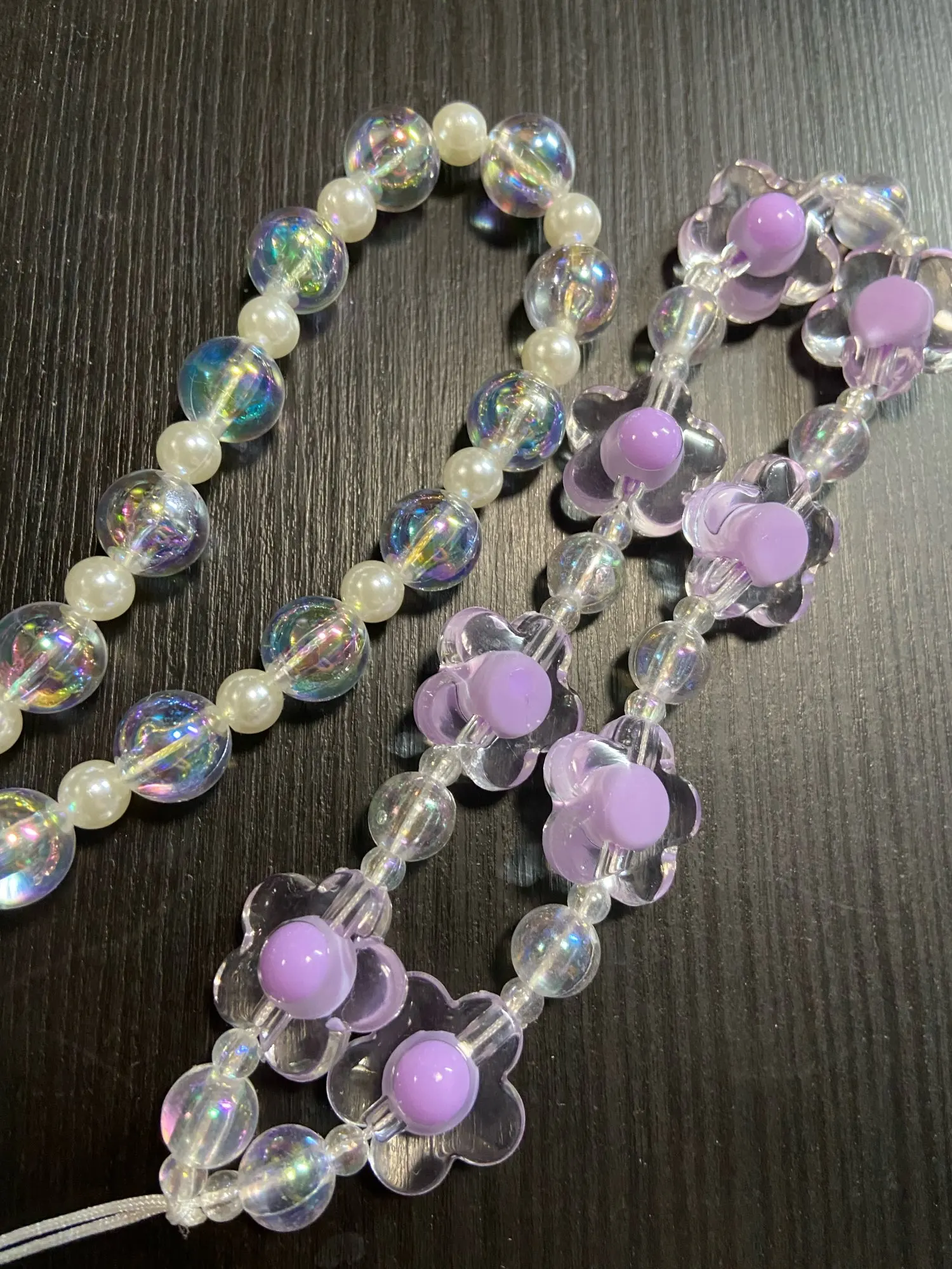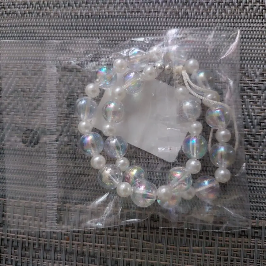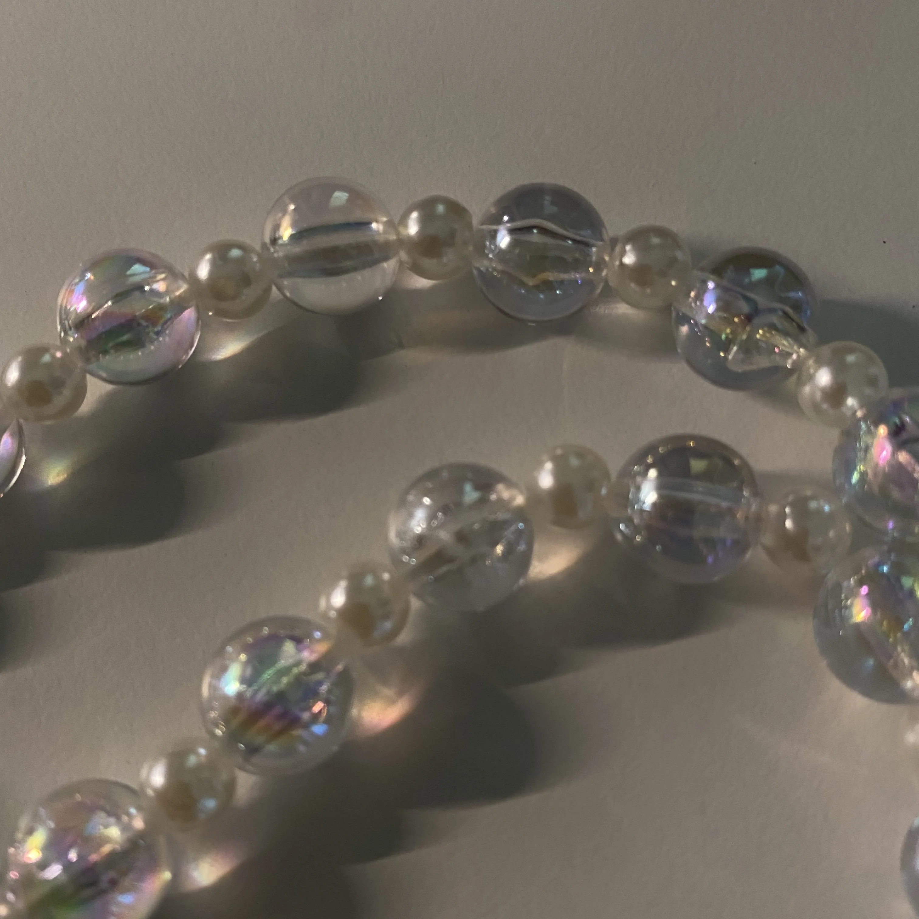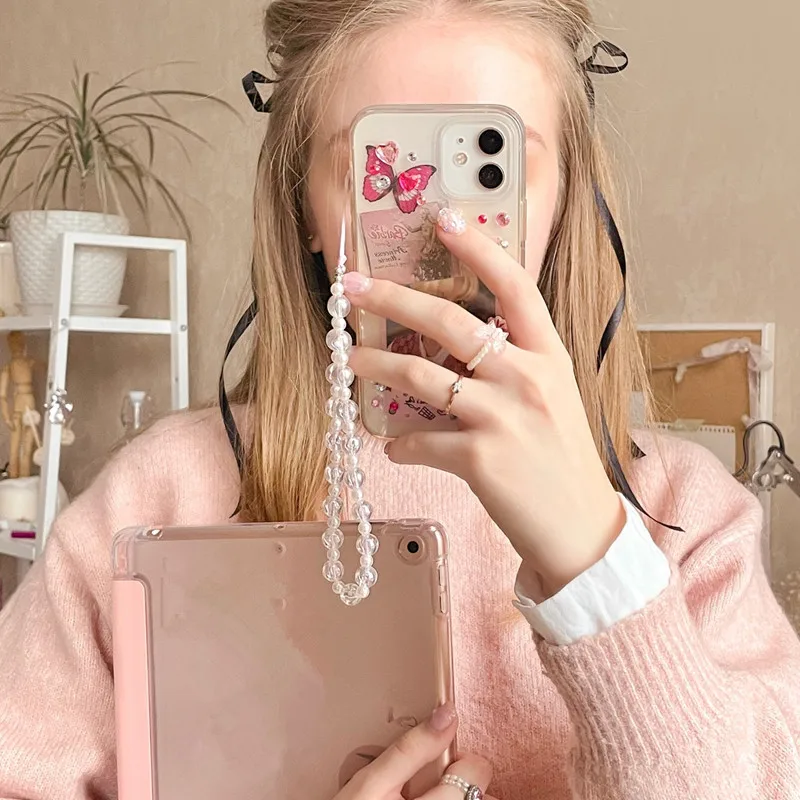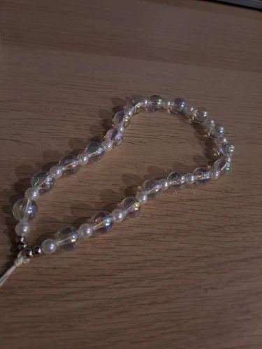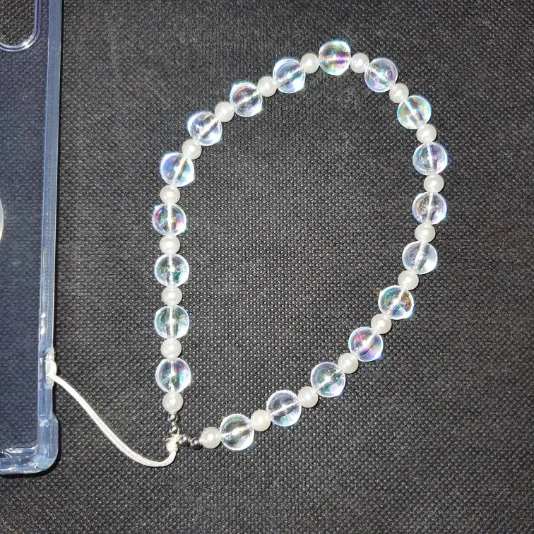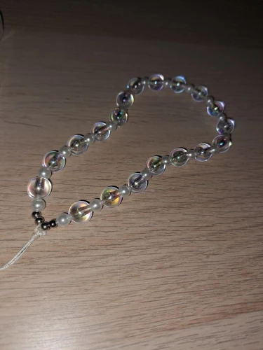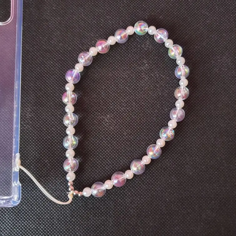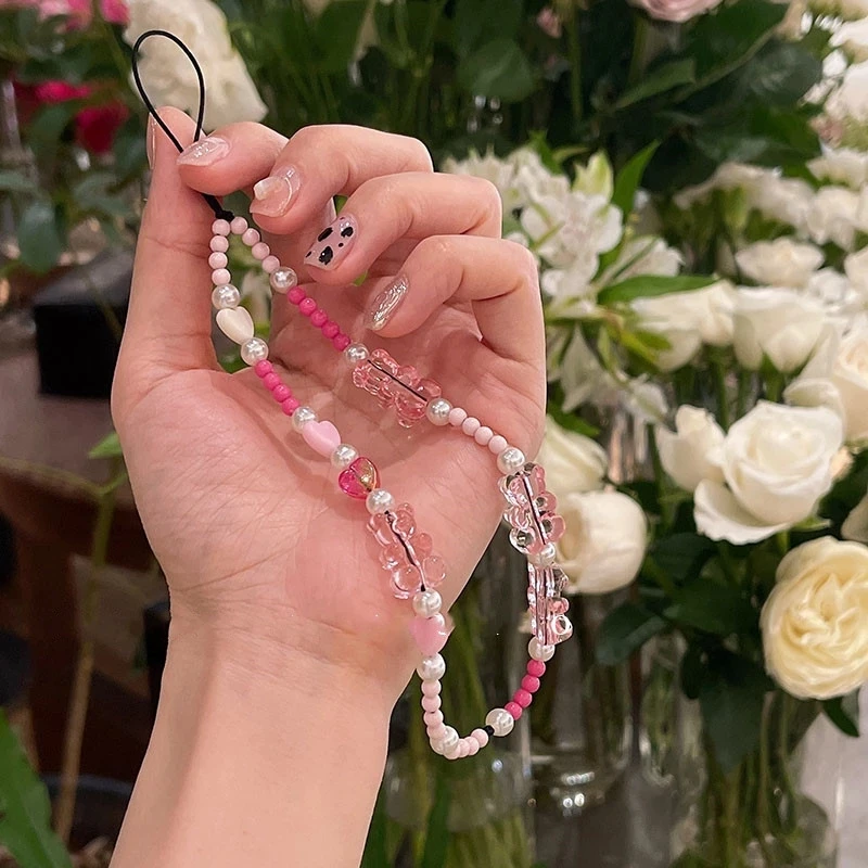 Цепочка-шнурок Женская, 2021, с круглым прозрачным сердцем и бусинами, бусины с имитацией жемчуга, мобильный телефон