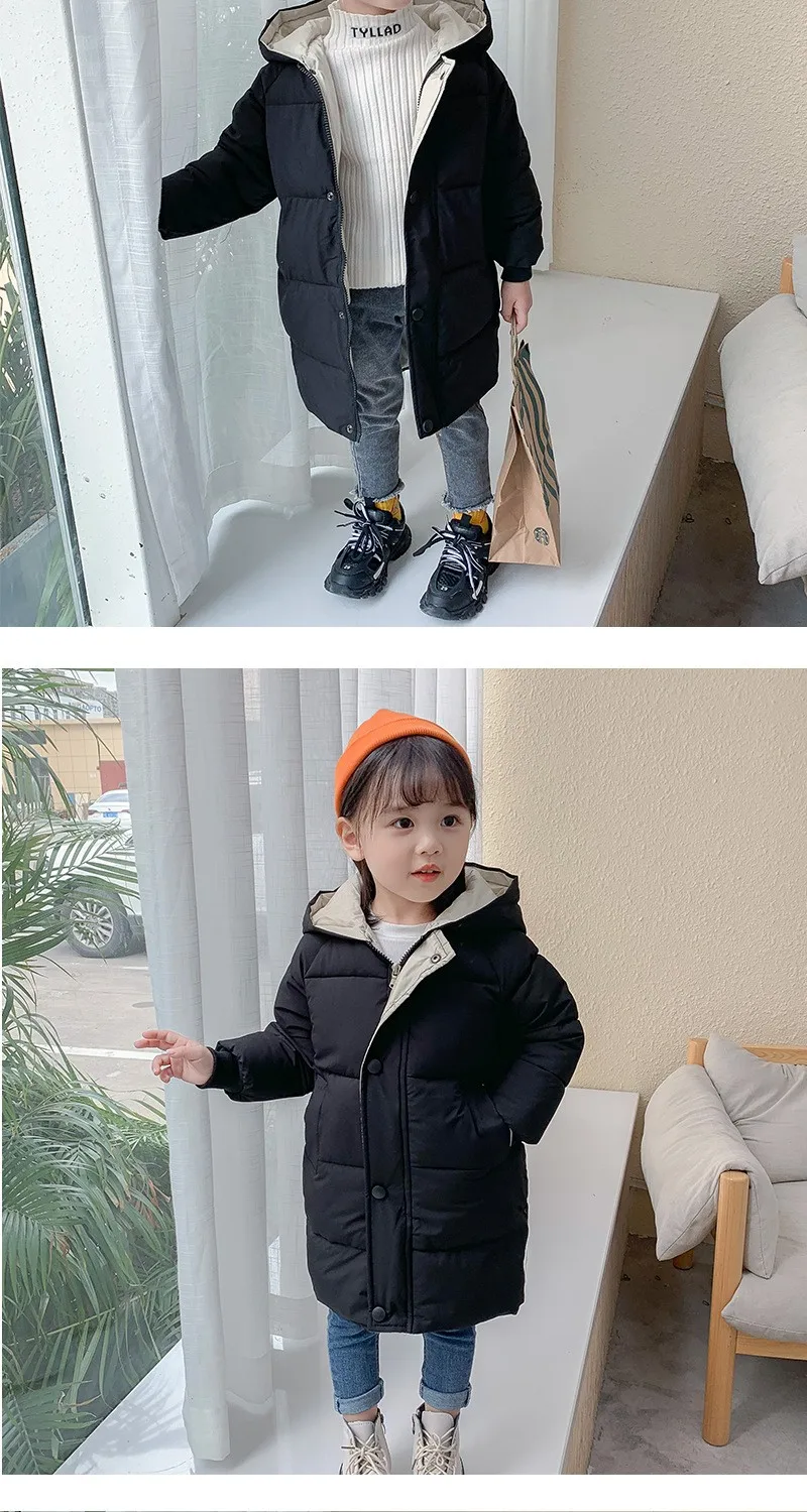 Куртки для мальчиков; Зимние пальто для девочек; Детские куртки; Детское плотное длинное пальто; Детская теплая верхняя одежда; Пальто с капюшоном; Зимний комбинезон; Верхняя одежда-Материал: хлопок, полиэстер
