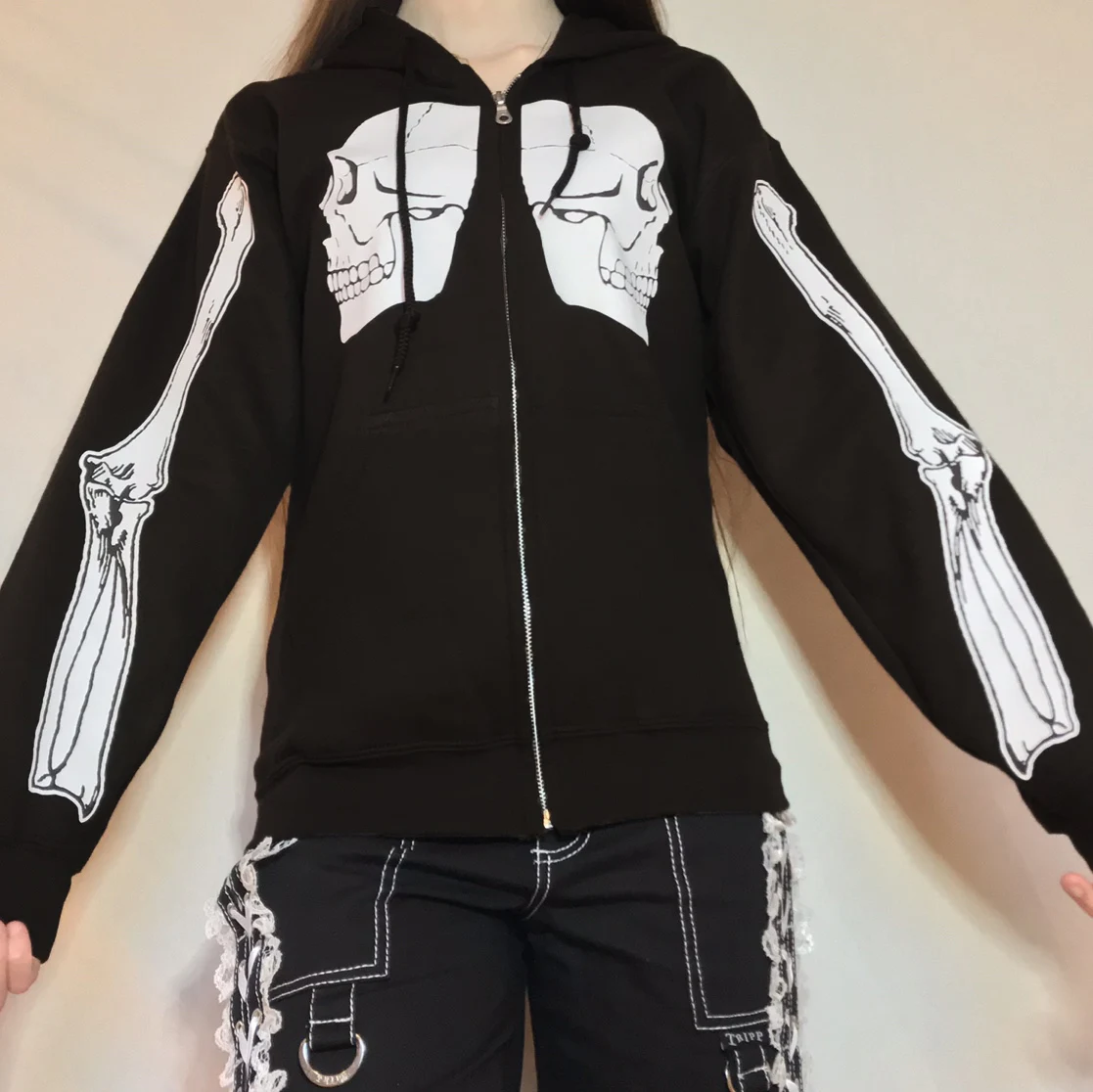 Свитшот Y2K мужской на молнии, готический Свитшот со скелетом, Худи...