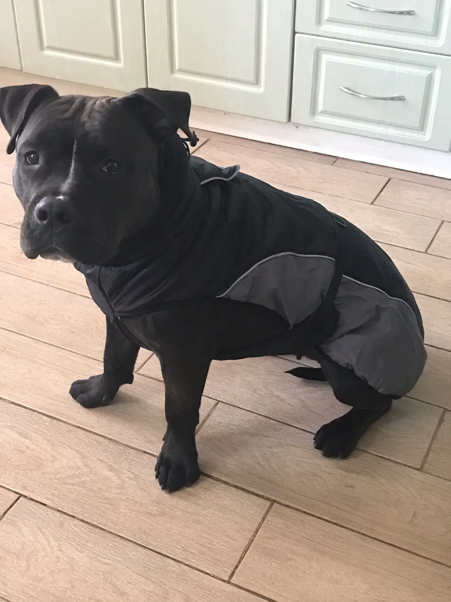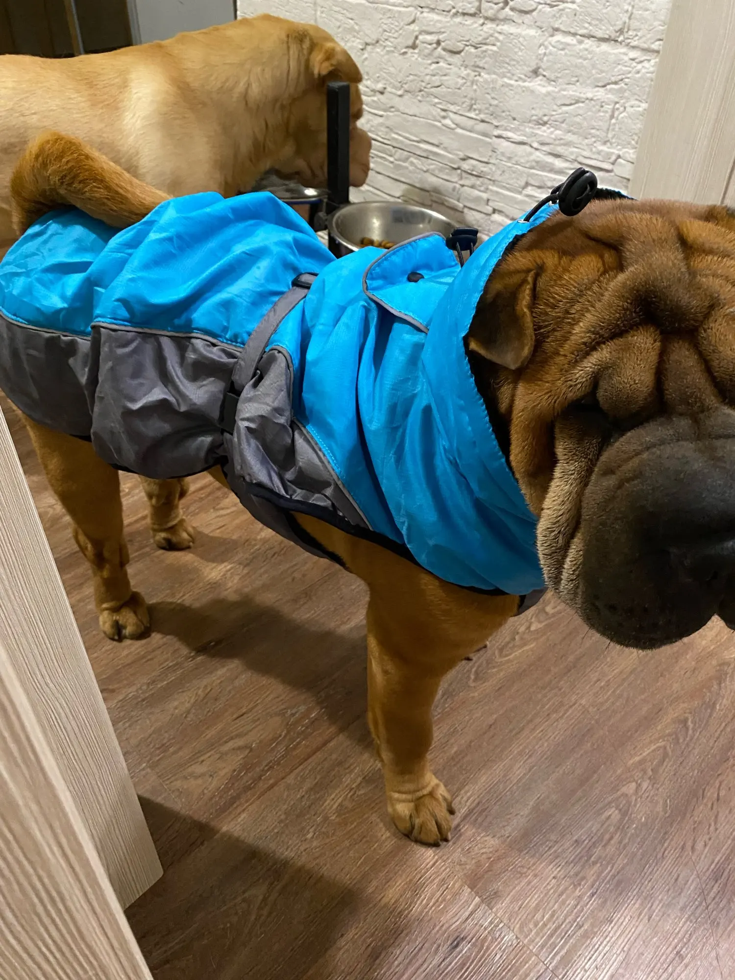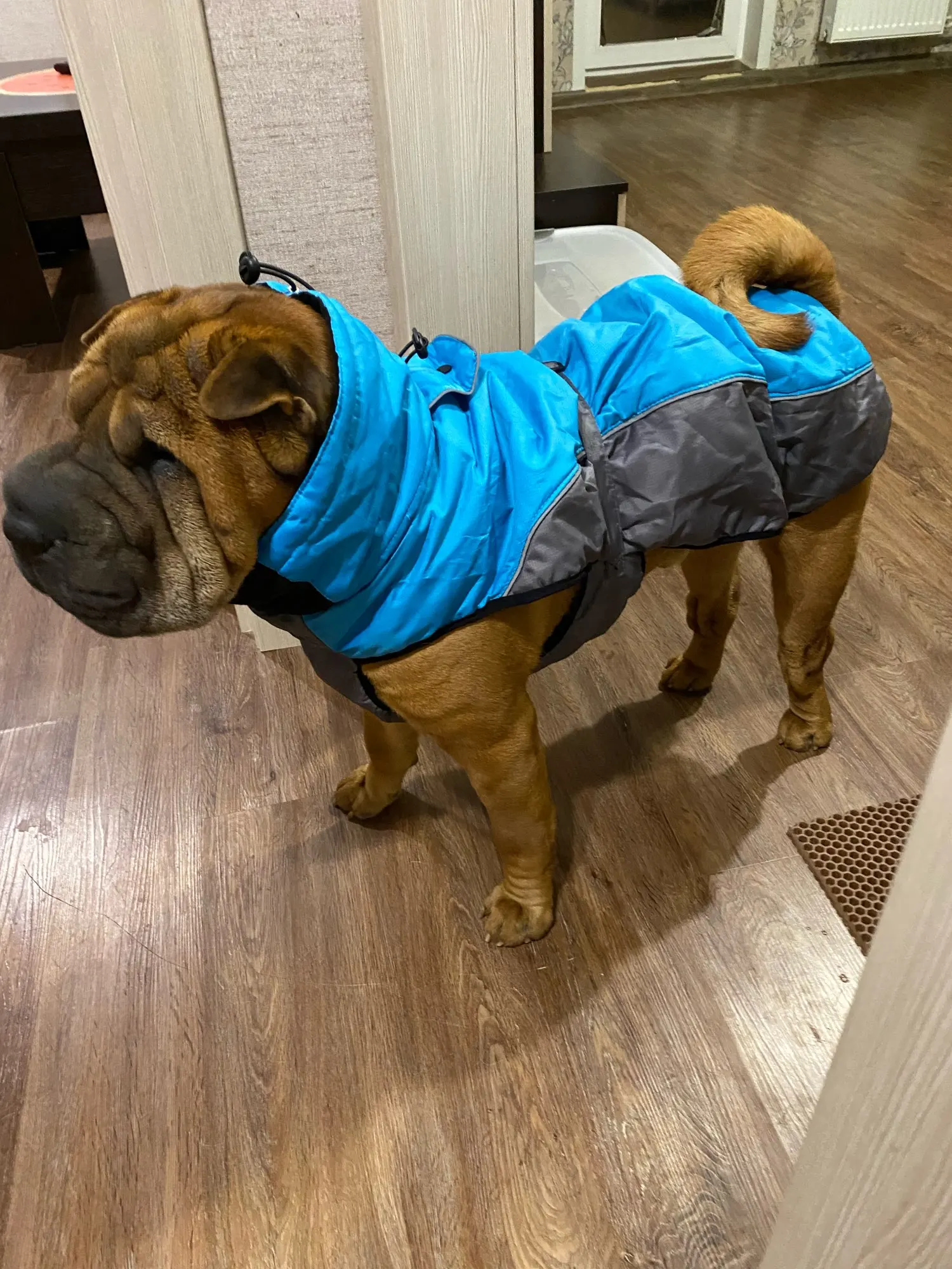 Мне куртка понравилась.Надеюсь моему французу тоже.Данной породе тяжело подобрать одежду у них короткое туловище и широкая грудина.Куртка плотная, с синтепоном,зимой будет тепло.А вот резинки сковывают движение задних лап,мой пёс это не оценил.