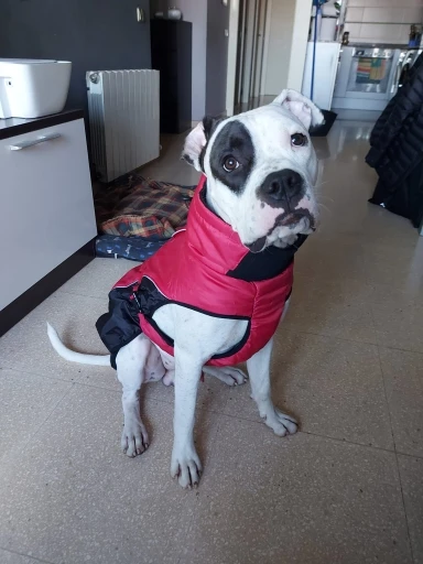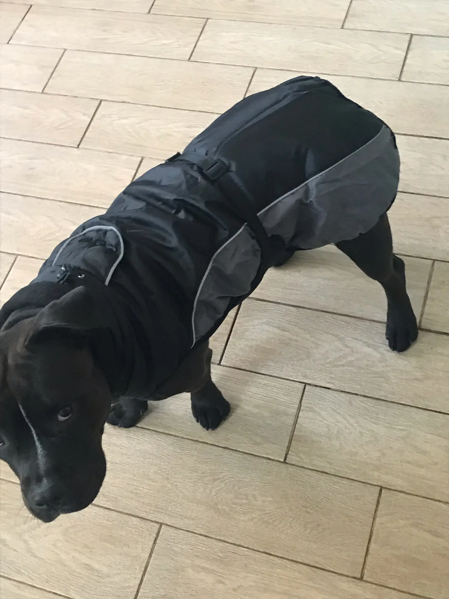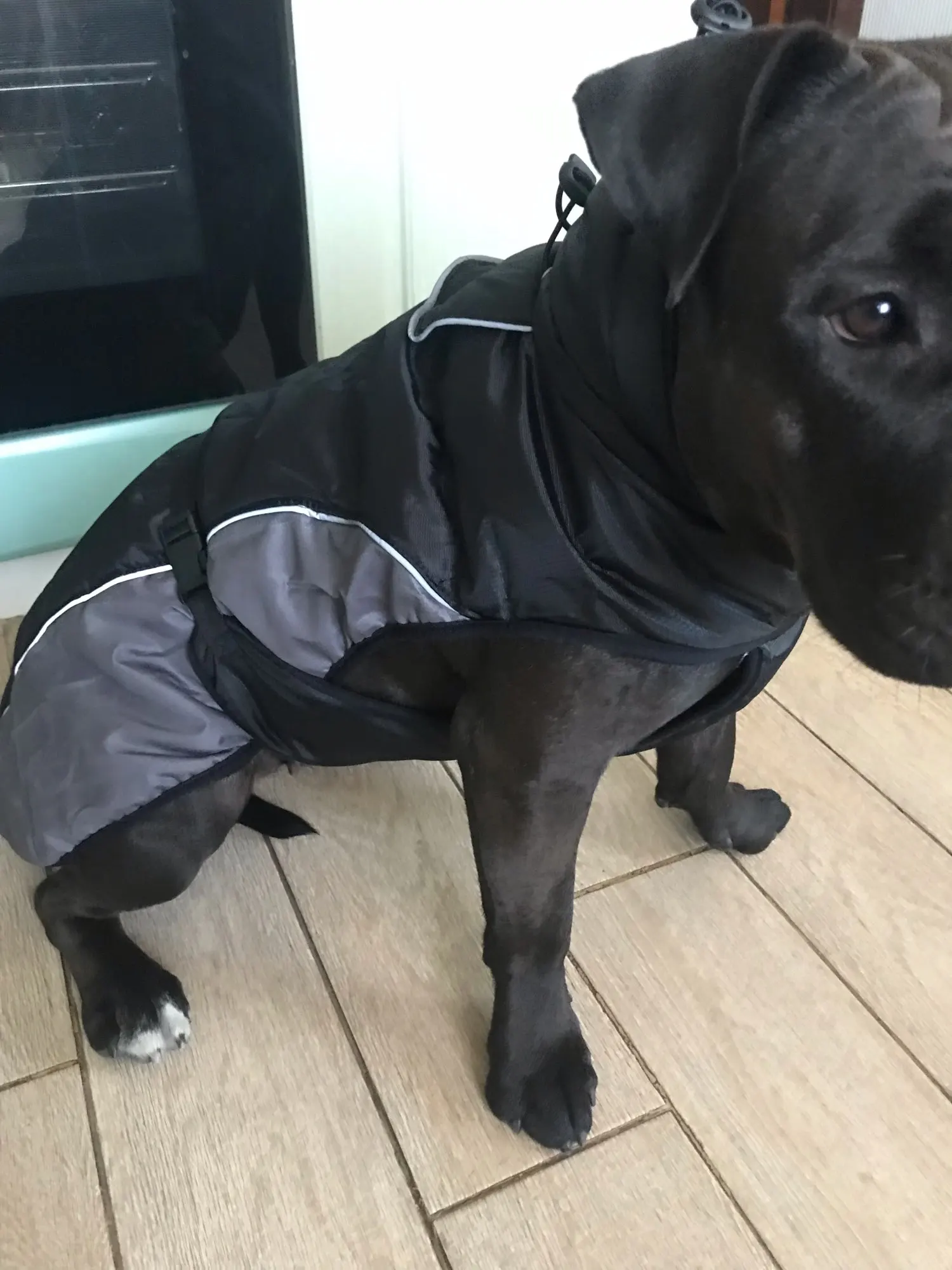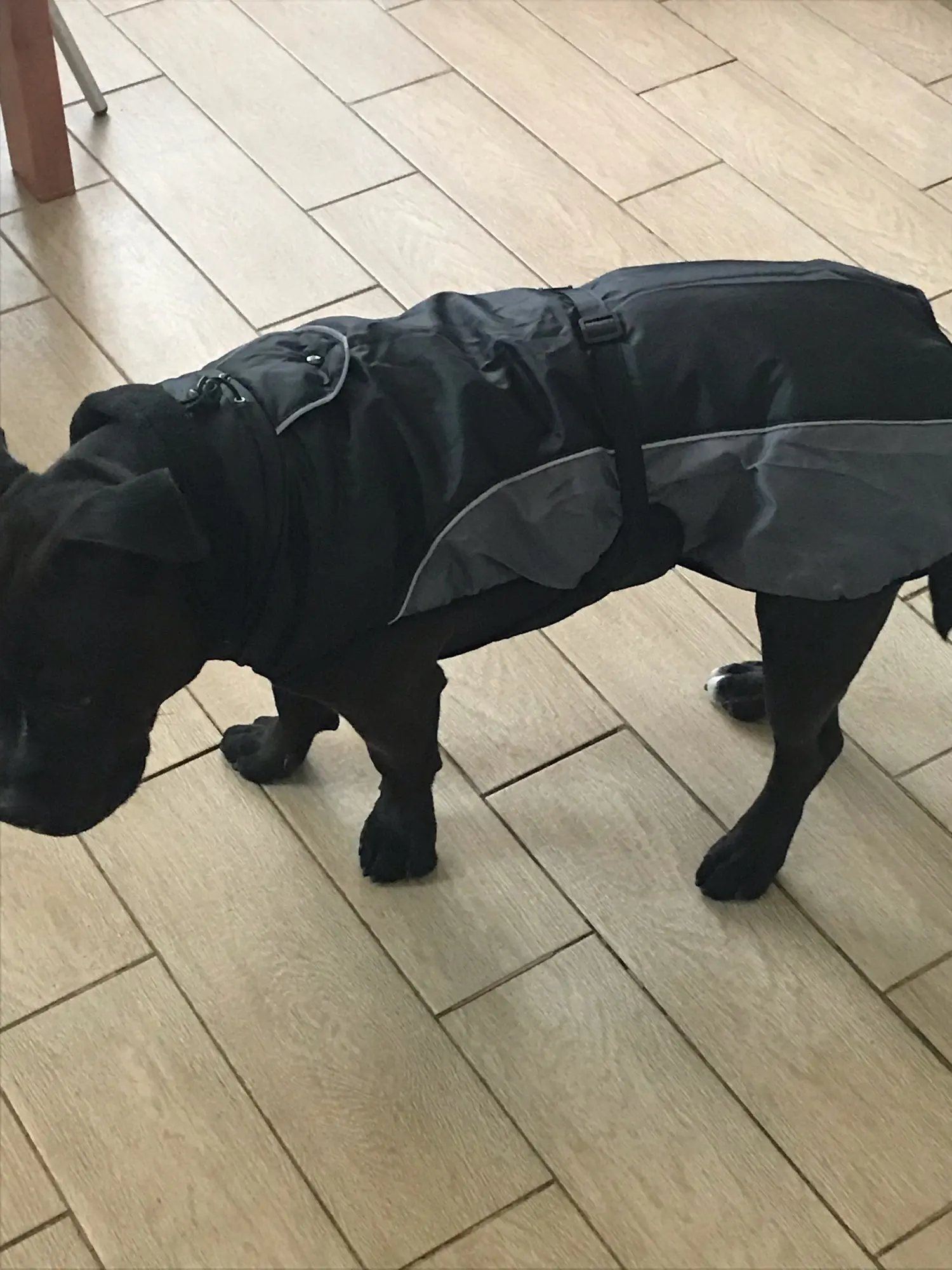 Мне куртка понравилась.Надеюсь моему французу тоже.Данной породе тяжело подобрать одежду у них короткое туловище и широкая грудина.Куртка плотная, с синтепоном,зимой будет тепло.А вот резинки сковывают движение задних лап,мой пёс это не оценил.