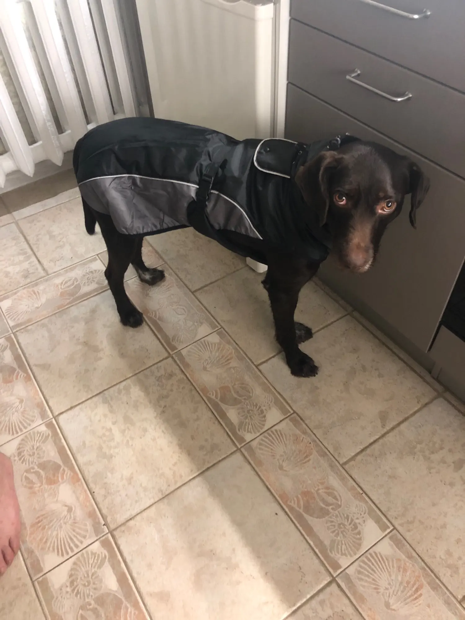 Пальто феноменально. Моя собака выглядит великолепно. Быстрая доставка. Спасибо, спасибо.