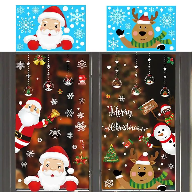 Рождественские наклейки на окна, наклейки с Санта-Клаусом, снежинками, зимние Наклейки на стены для детской комнаты, новогодние и рождественские украшения на окна