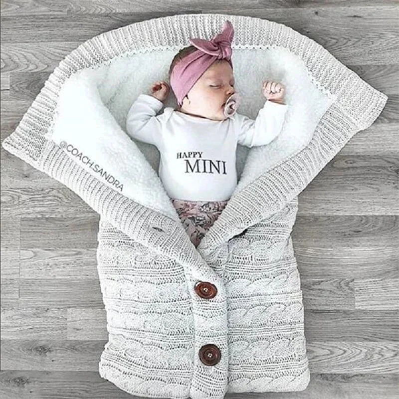 Зимние теплые спальные мешки для новорожденных, вязаные пеленки с пуговицами для новорожденных, пеленки, пеленки для коляски, пеленки, одеяло для малышей, спальные мешки