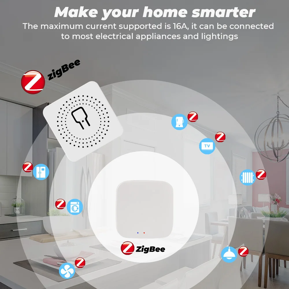 Умный мини-переключатель Zigbee Lonsonho Tuya, 16 А, беспроводное управление с помощью Alexa, Google Home