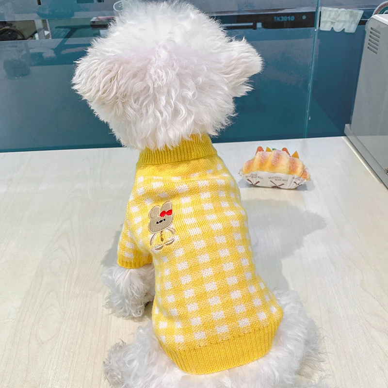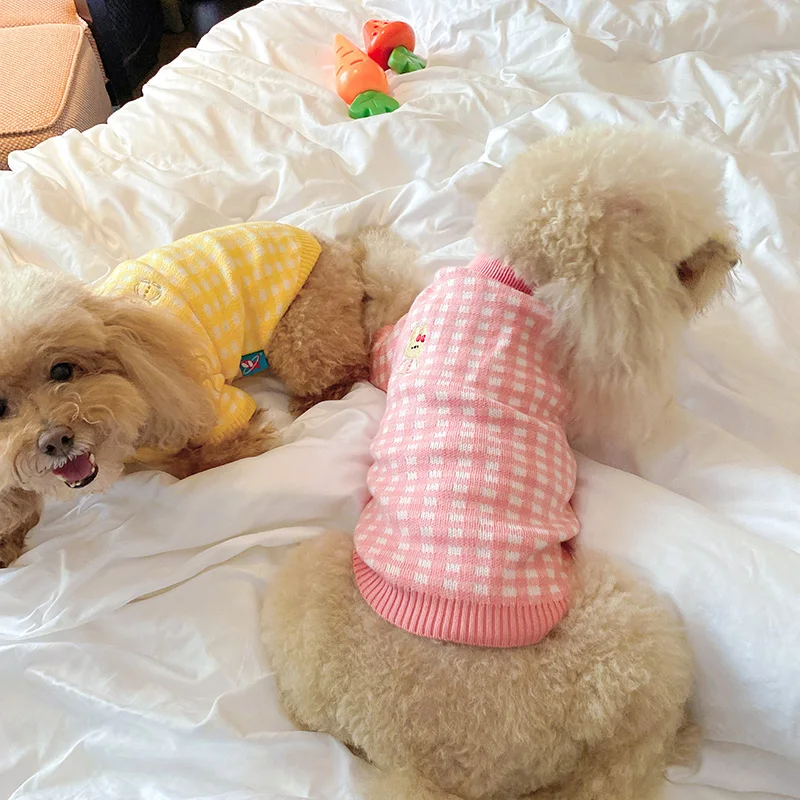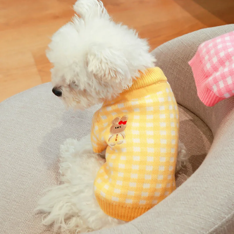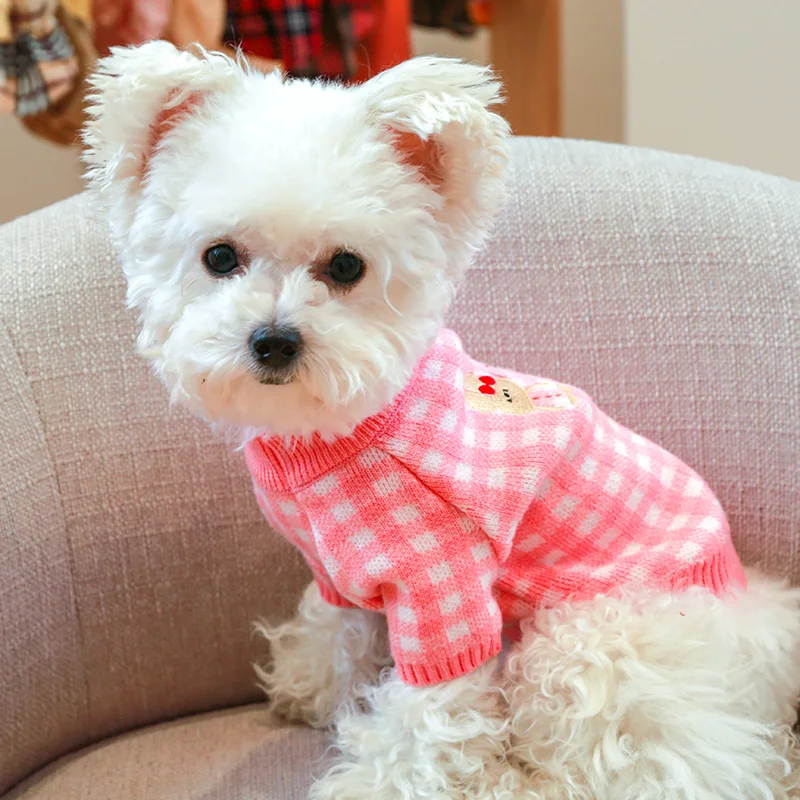 Свитер для собак в розовую клетку, для маленьких собак, зимняя одеж...