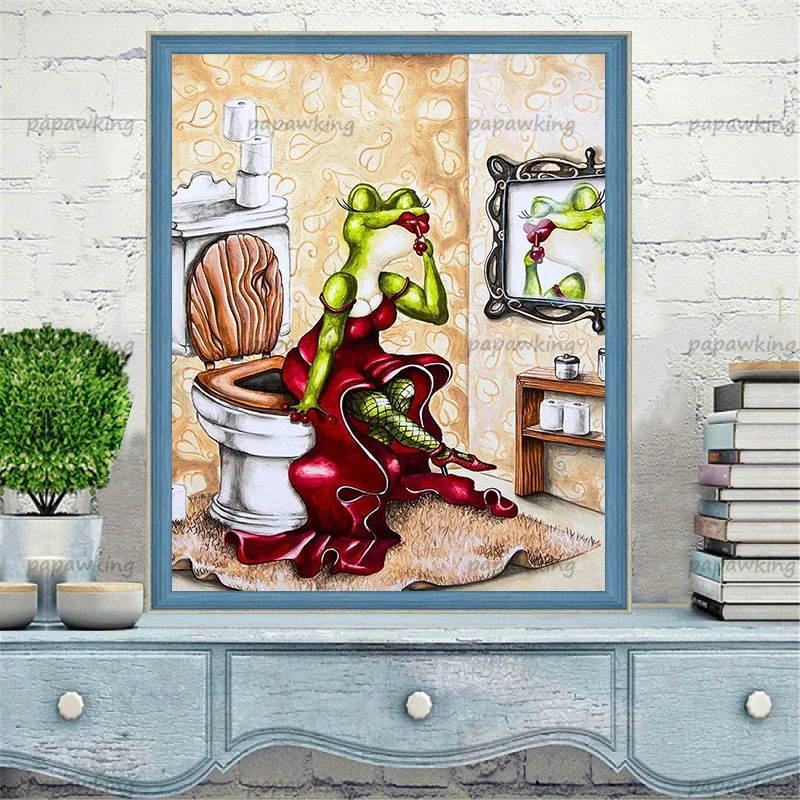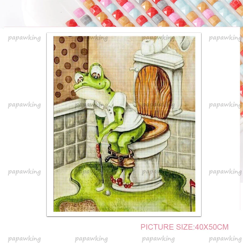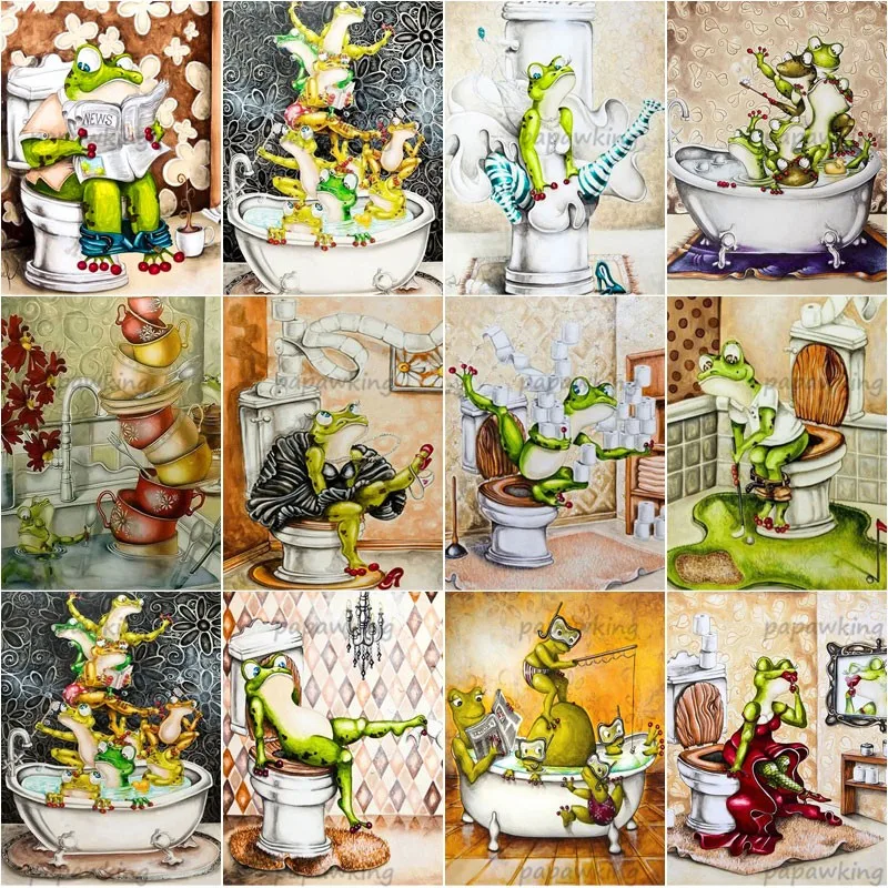 Забавная лягушка, ванная комната, алмазная живопись, абстрактный мультфильм, полная вышивка, крест, детская комната, украшение для дома, подарок