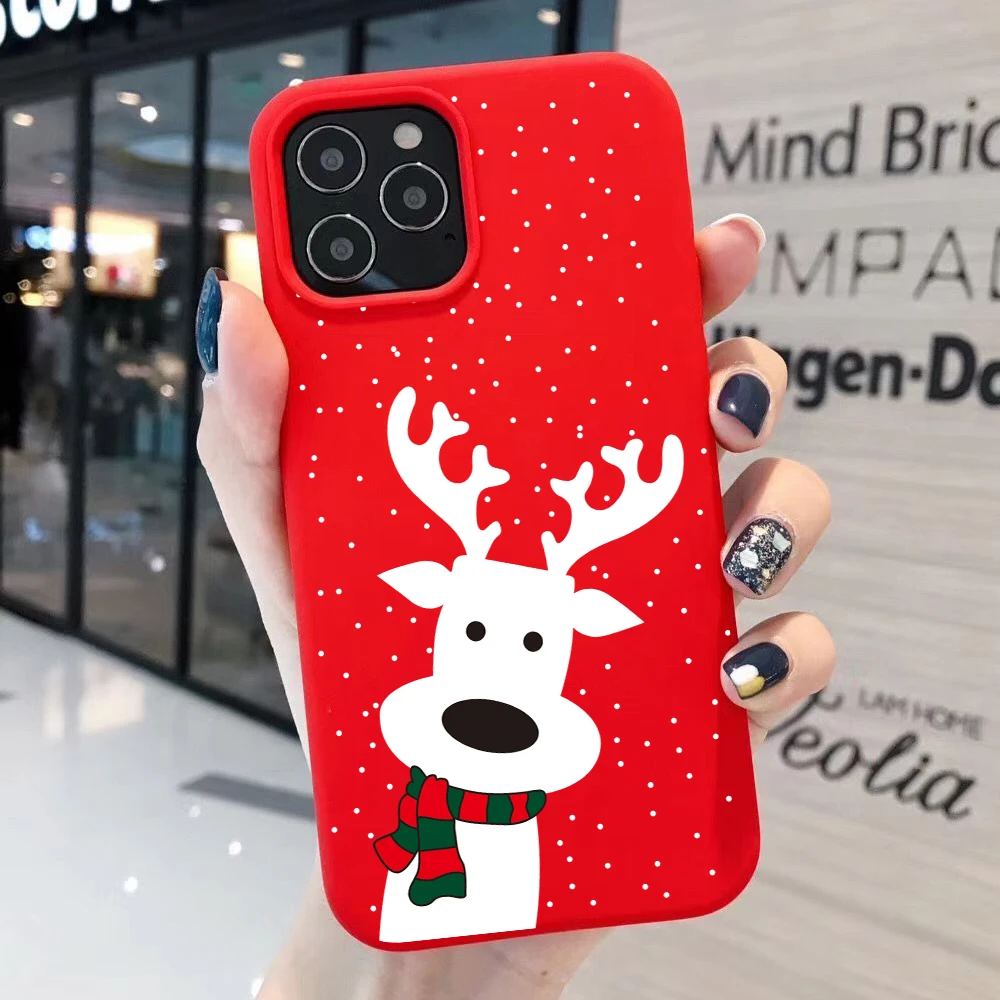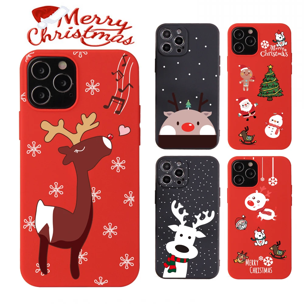 Мультяшный Рождественский матовый чехол для iPhone 12 11 Pro Max 7 8 Plus X Xr Xs SE20 13pro милый силиконовый чехол с оленем чехол Новогодний подарок