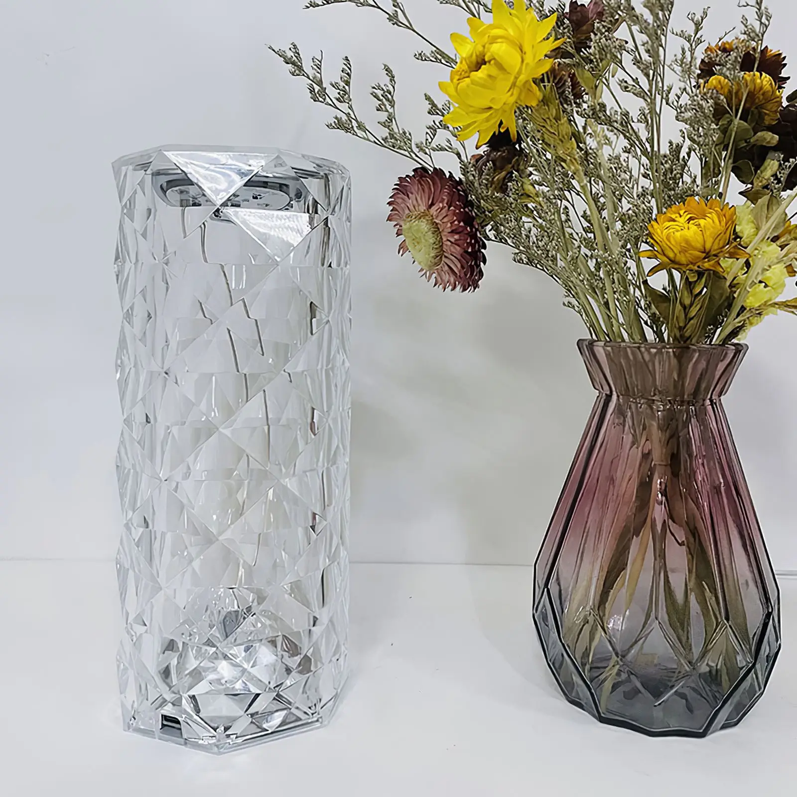 Светодиодная настольная лампа с кристаллами, сенсорный перезаряжаемый Настольный проектор, роза, настольная лампа, RGB Ночной светильник, украшение для прикроватной тумбочки, подарок